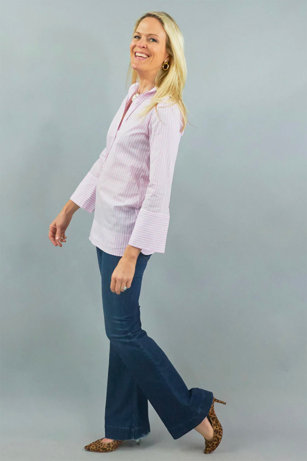 Ivy Tunic - Baby Pink Stripe Stretch Cotton