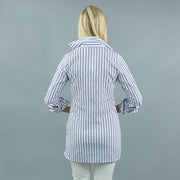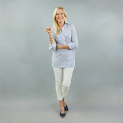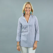 BACK BY POPULAR DEMAND! Our Ivy Tunic is everyones favorite, especially this classic blue and white stripe in our lux stretch cotton shirting.
