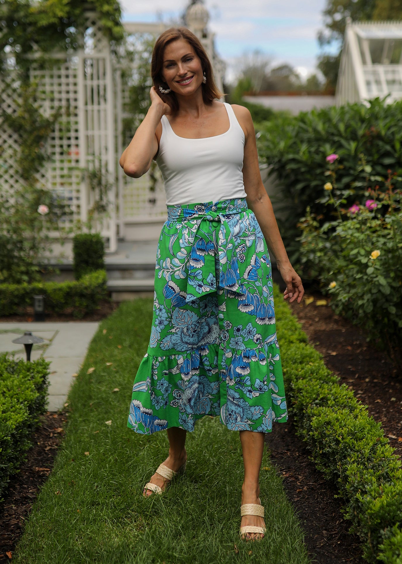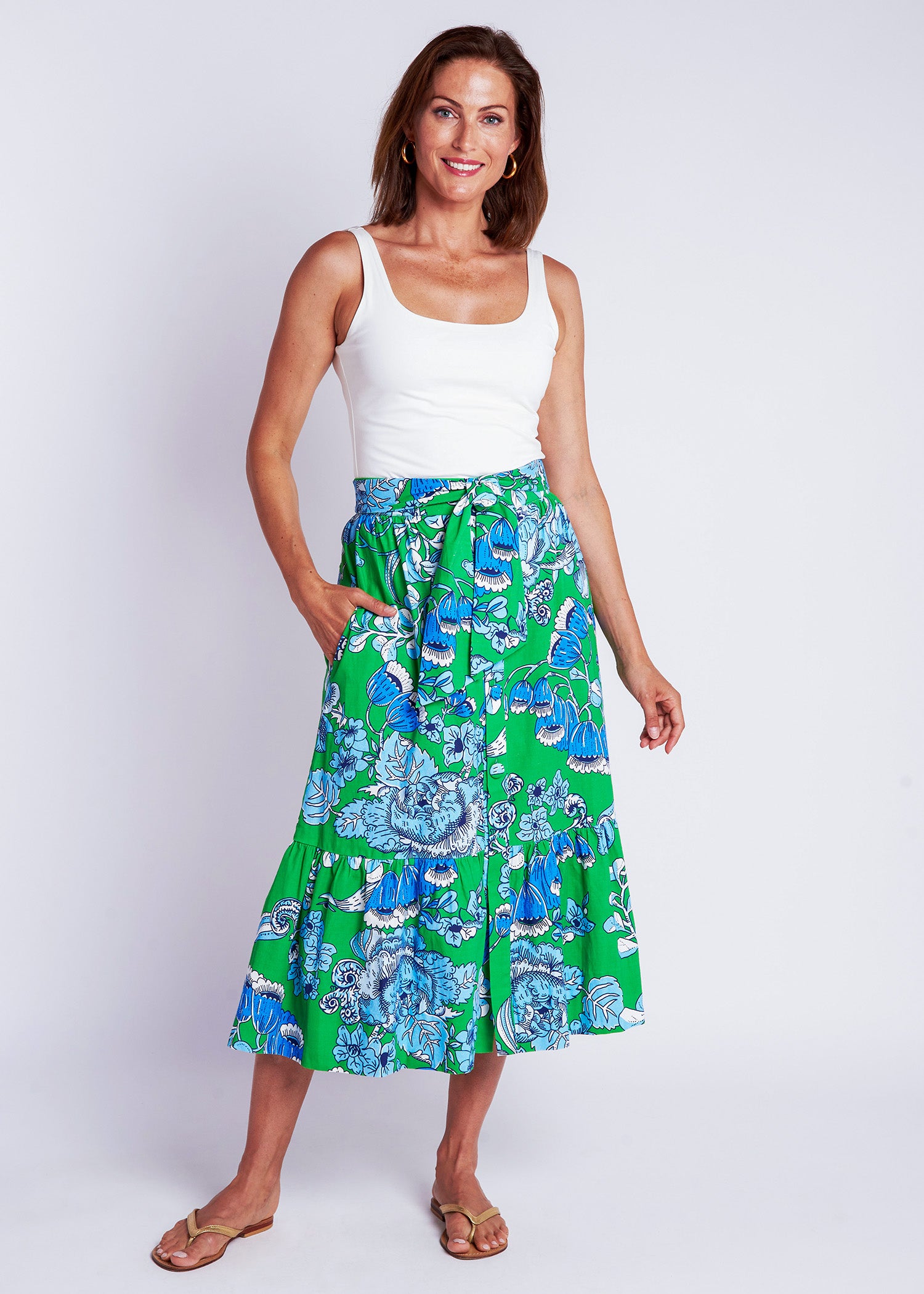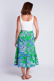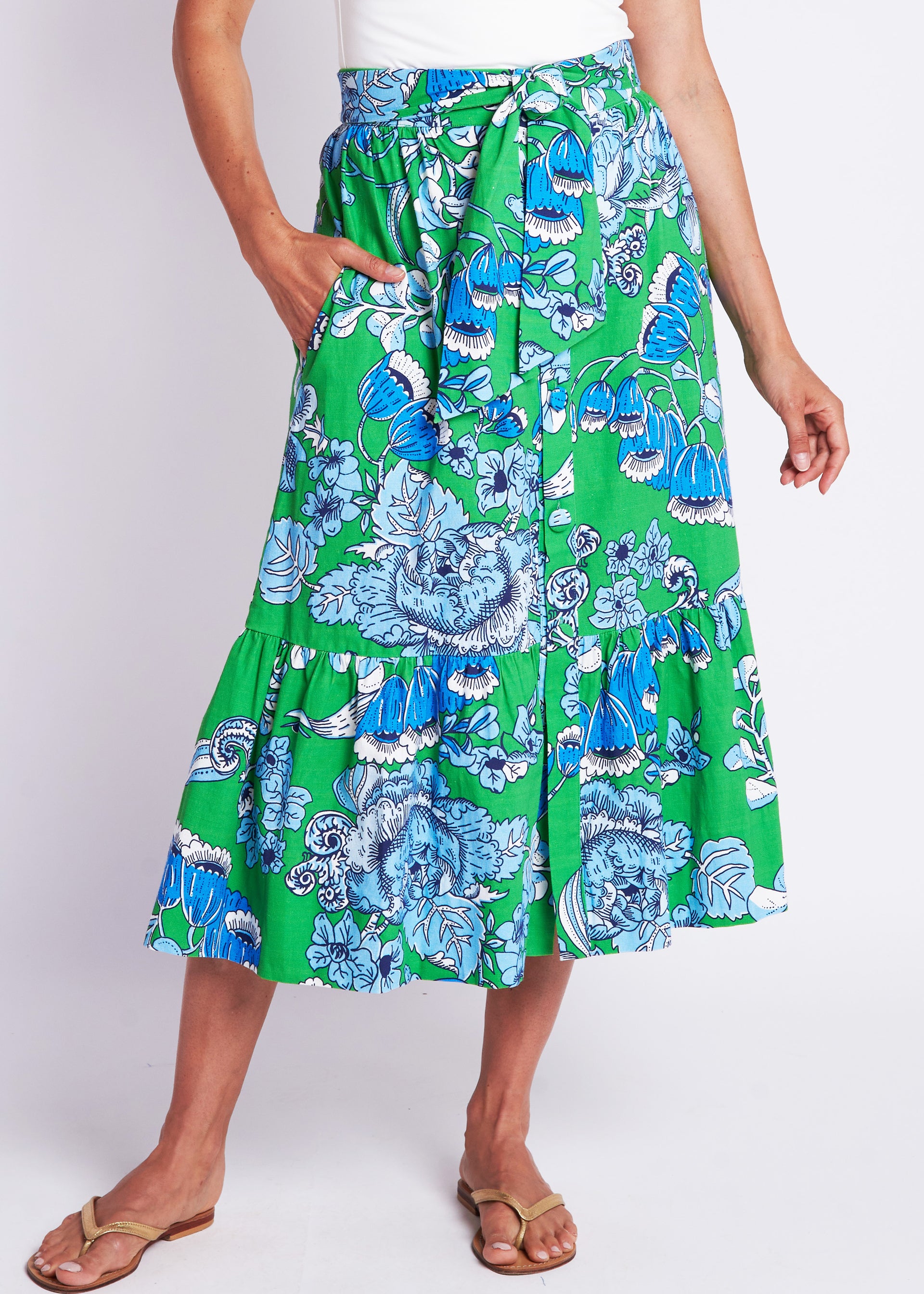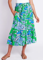 Vintage clothing lovers, unite! The Phoebe Skirt is CKB's latest retro-inspired piece, designed to take you from day-to-night looking chic as ever! Featuring a high waist with tie detail, a tiered A-line fit, button front and pockets!