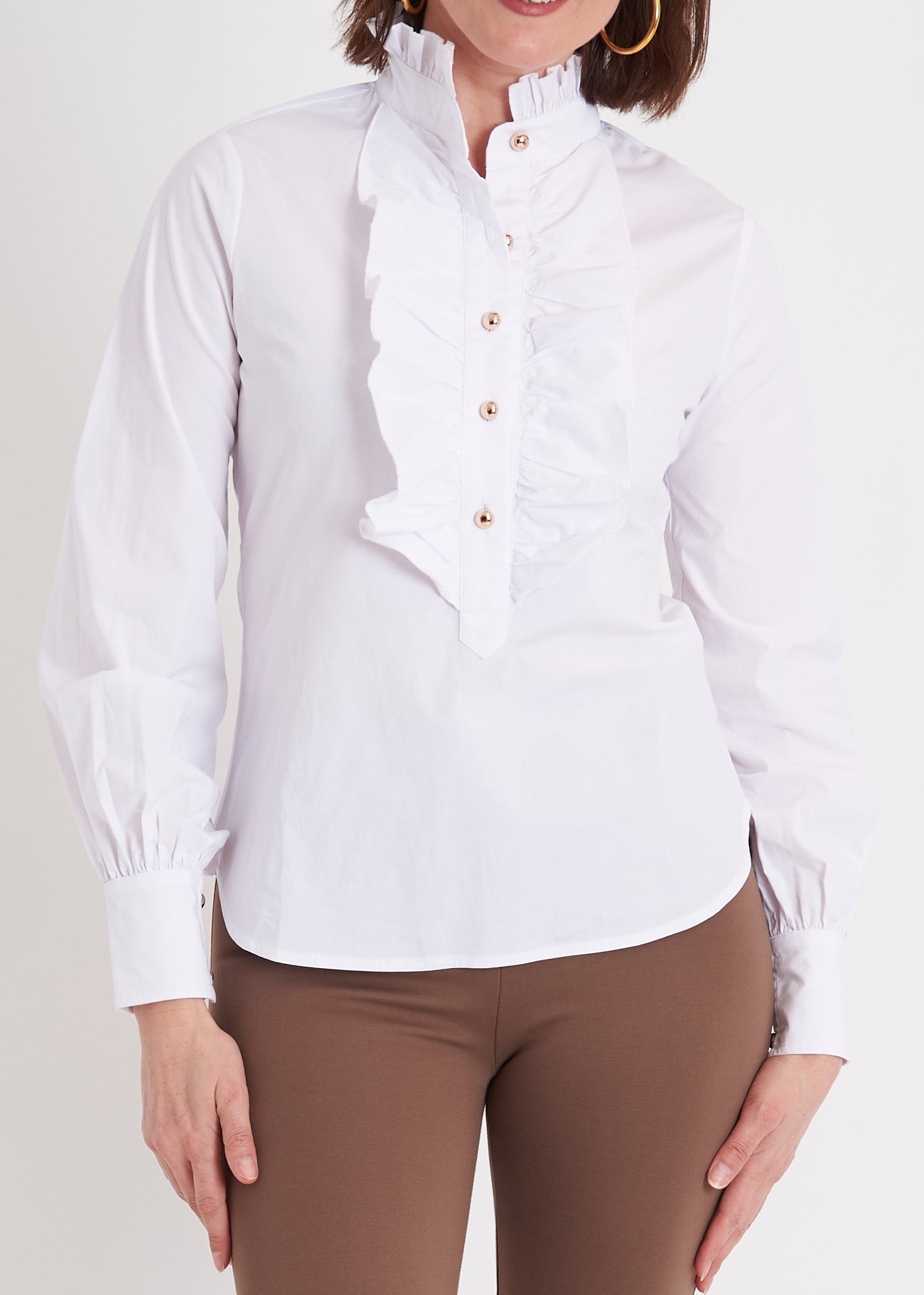 We have said it before, "If you know, you know." This blouse does not disappoint in crisp & classic white cotton. We love it with our faux suede Swizzle Pants and ballet flats or simply with jeans and boots.
