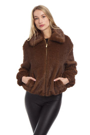 Garbo Bomber. Chic zipper front Faux Mink fur with stretch sleeve opening. Fully lined.