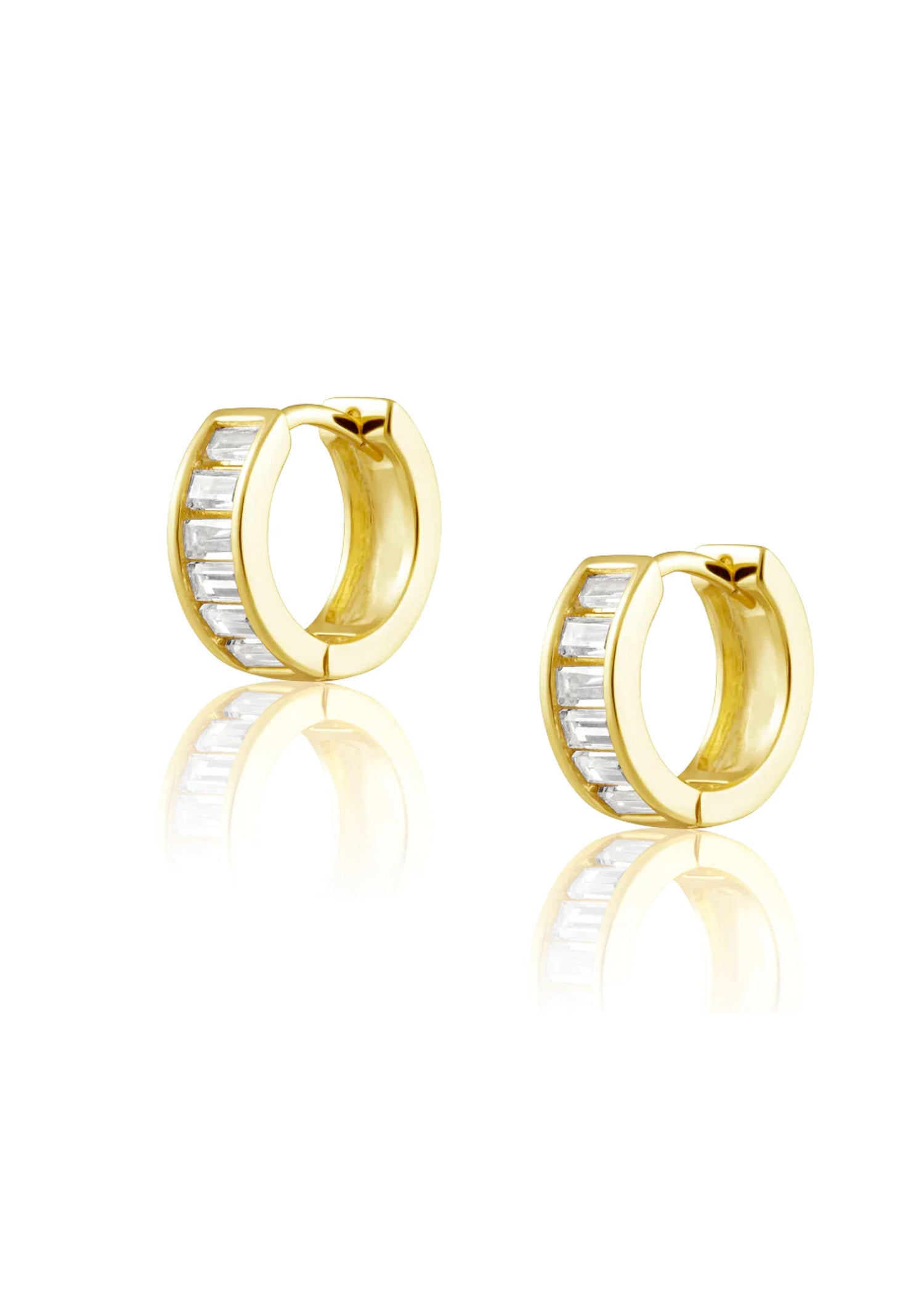 Haven't you heard? Emerald is the new black and we are here for it. Feel sophisticated yet edgy in the Peyton Emerald Cut Cz Huggies. The perfect ear stacking piece!