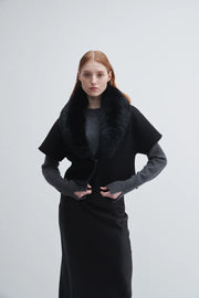 Pissenlit Short-Sleeve Jacket with Fur Collar - Black