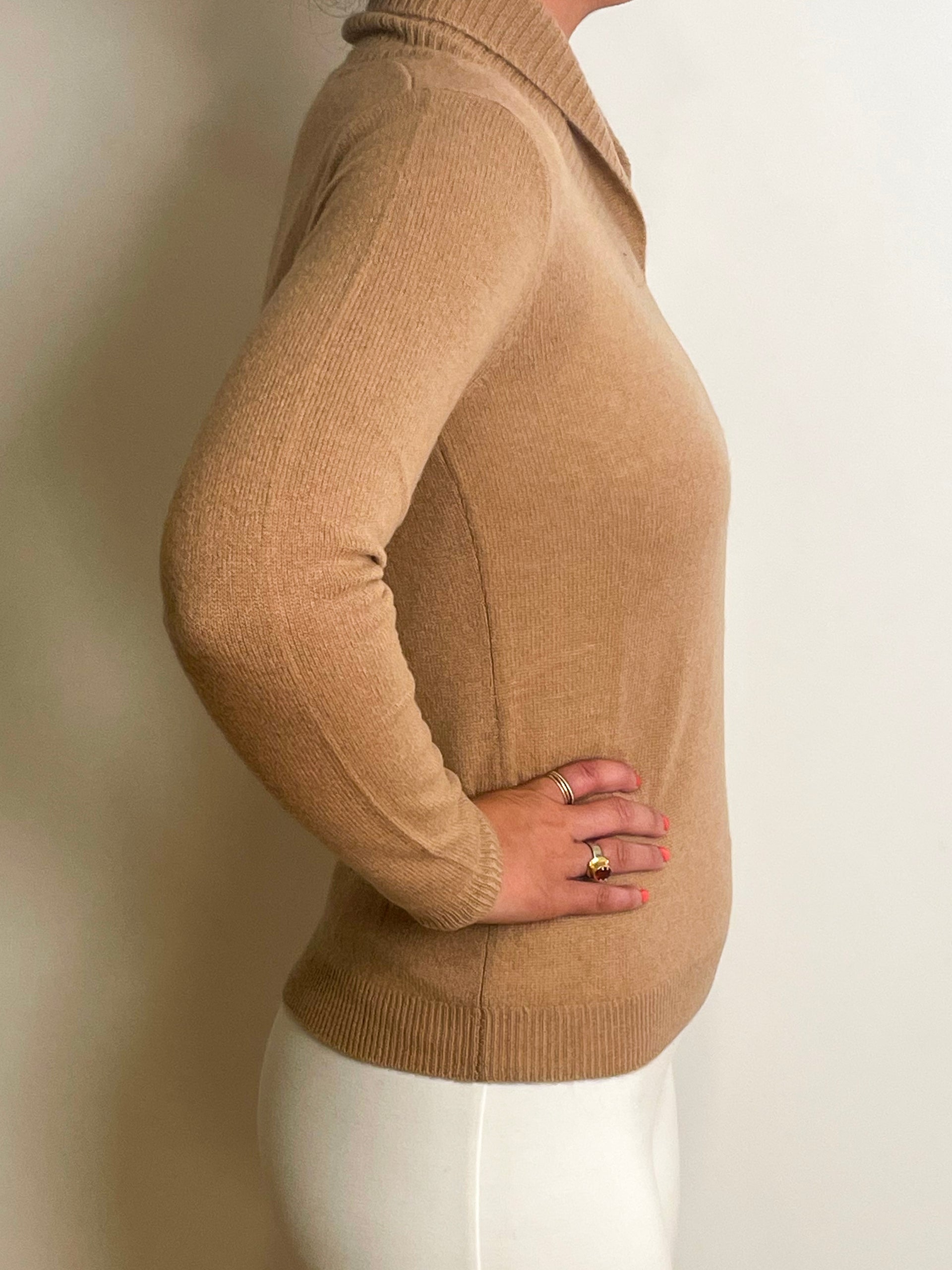 Ribbed Collar Pullover - Camel