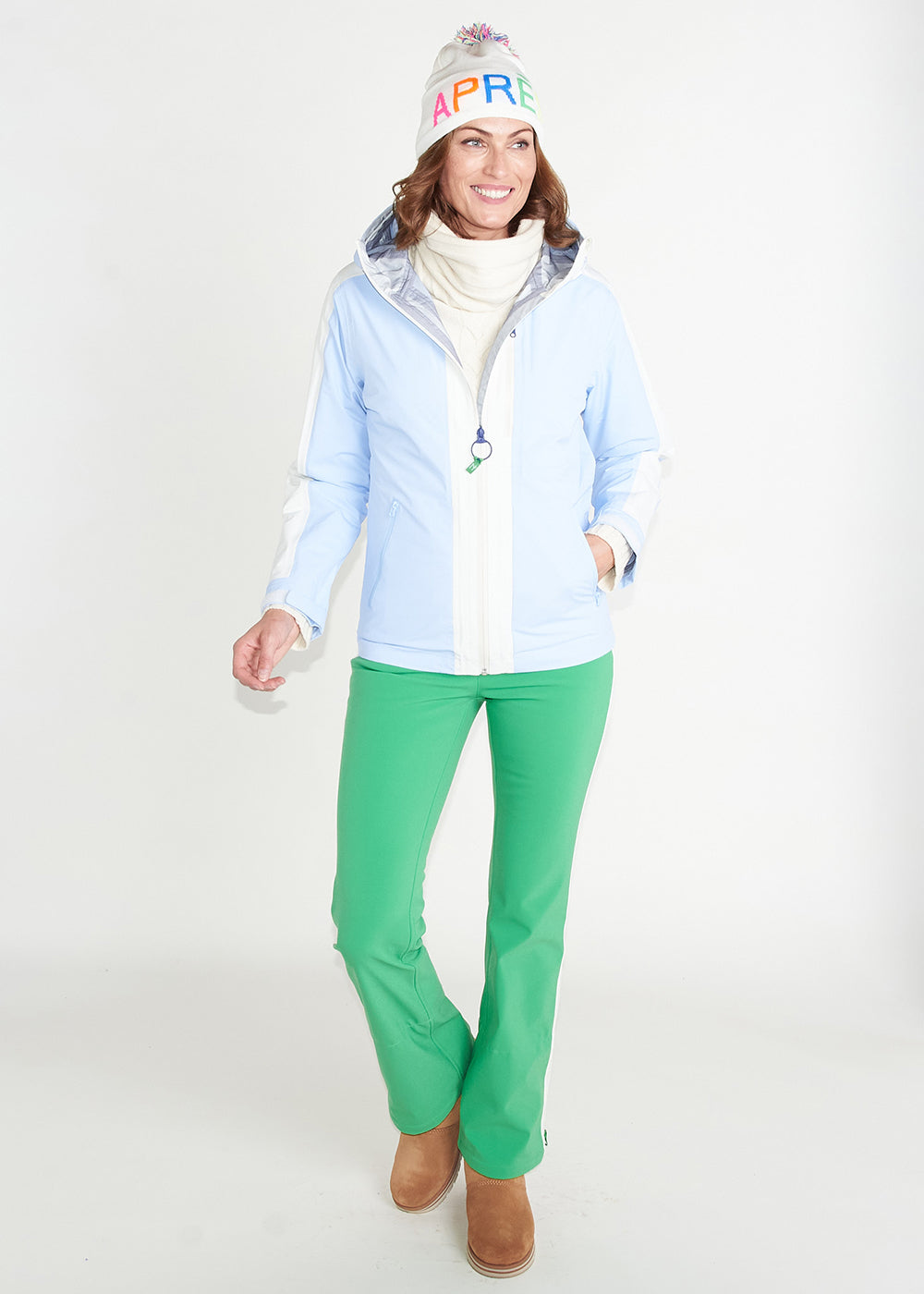 Meet the Schatze. A shell that can shield the rain, or snow. Pair with the Trixie pant for a sleek look on the slopes.