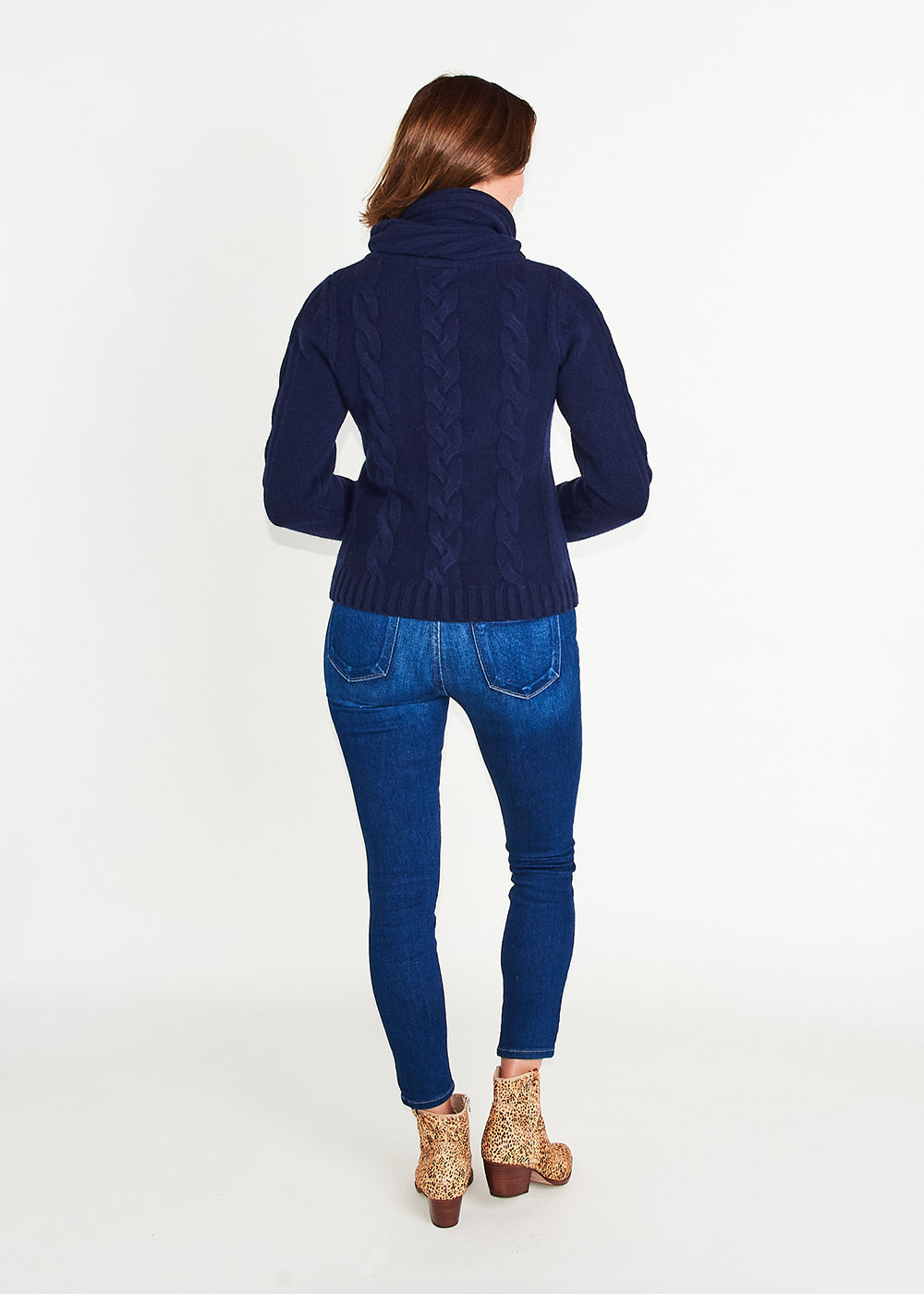 You may need this in every color. It is SO SOFT with a big fold over / scrunch down neck to keep you cozy and warm. Bulky cable makes this a sweater you shouldn't live without.