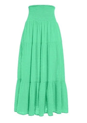 We have taken our smocking concept from our best selling smocked dress and designed a flirty maxi skirt.This skirt is made in our ultra soft machine washable cotton gauze. Style with a matching peasant top for a great set or simply pair with a tank top. Length of skirt hits right at the ankle for anyone taller than 5"2.