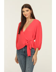 Increase quantity for Veronica M Puff Sleeve Wrap Blouse - Coral