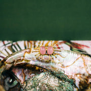 This pink hand-cut glass is surrounded by a half sun to make a big statement in a small area. 18k gold plate over nickel free brass. Responsibly handcrafted by artisans just outside Jaipurs historical Pink Palace.