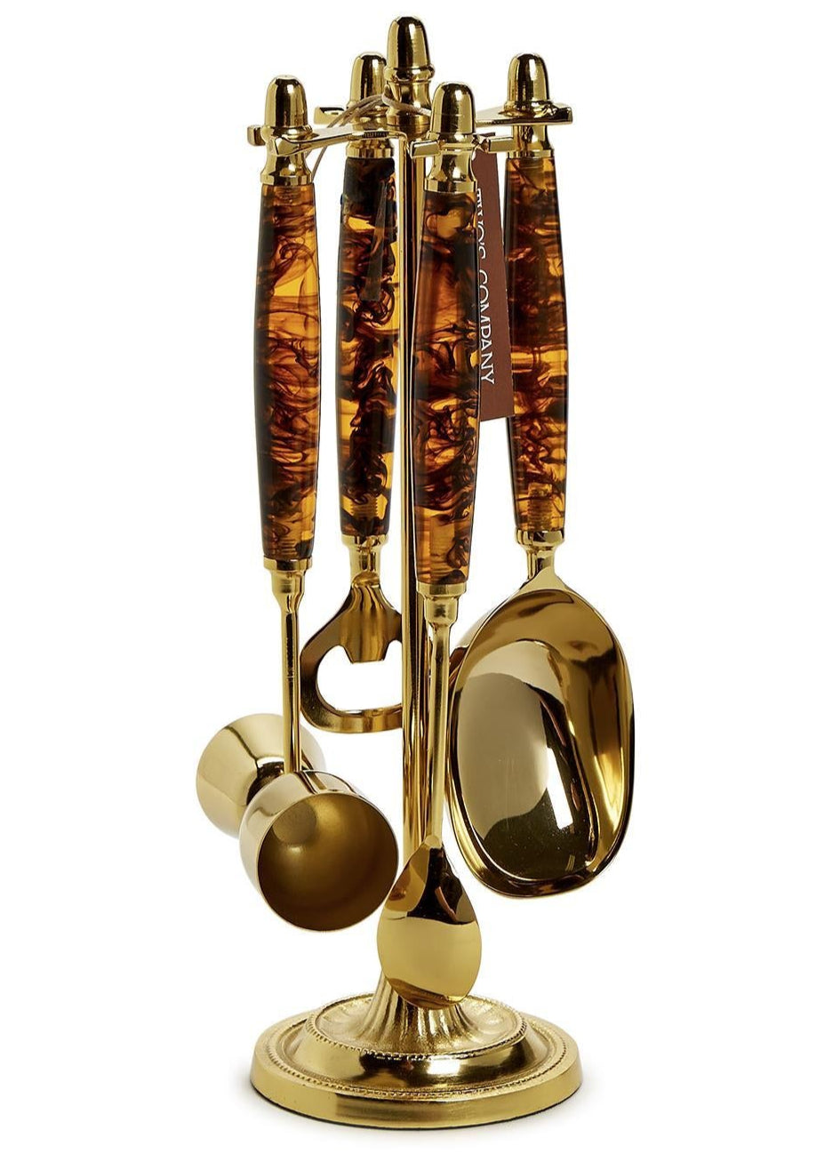 Two's Company 4 Pc Tortoise Print Bar Set with Stand