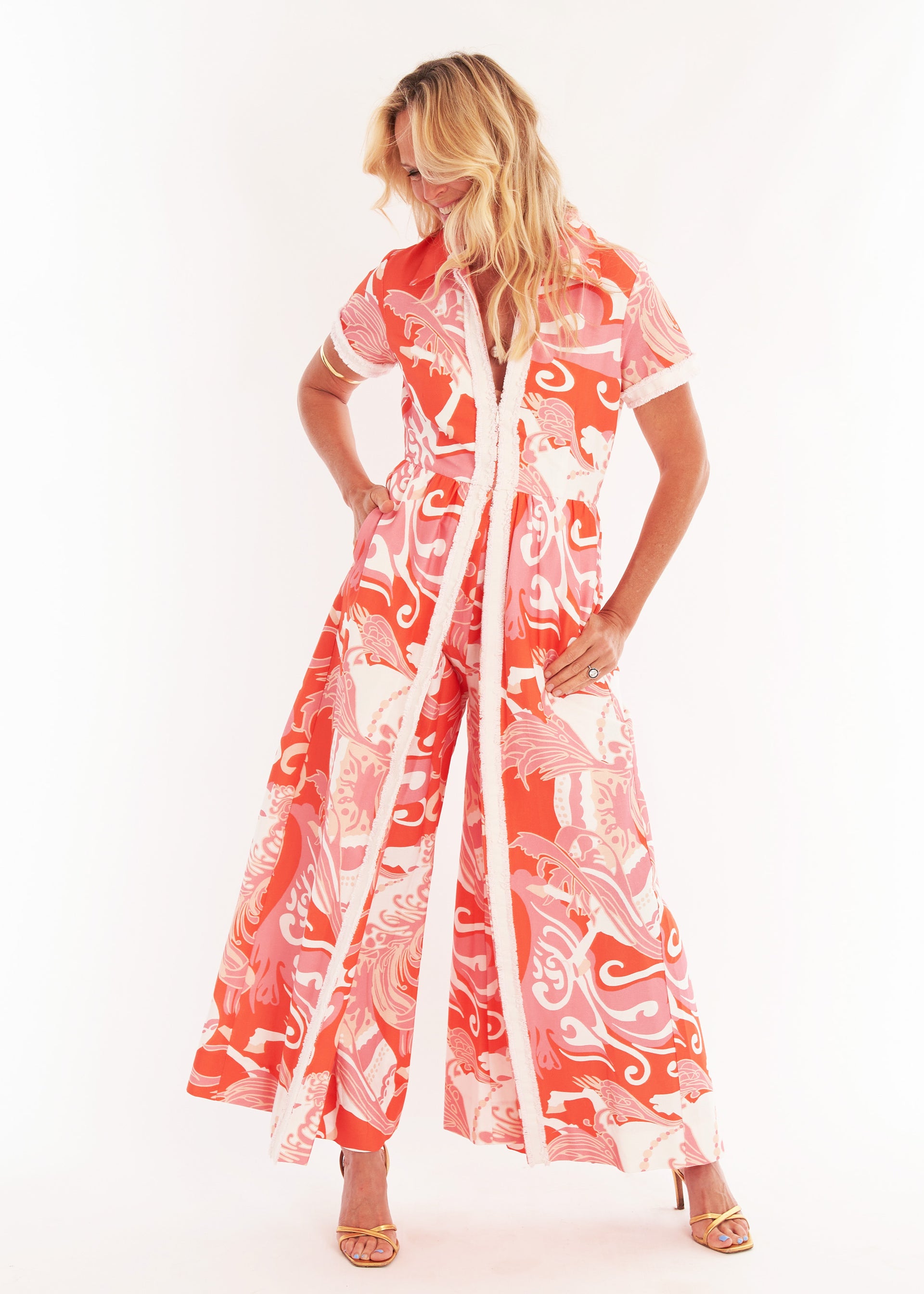 Why settle for ordinary when you can turn heads? Our Coulotte Jumpsuit channels vintage glamour with a modern twist—think effortless elegance meets statement-making style. The streamlined silhouette flatters every frame while the bold Nouveau Papaya print adds that extra flair. Pair with chunky block heels and gold hoops for an unforgettable summer look that says you're anything but basic.