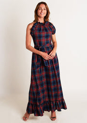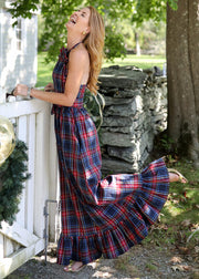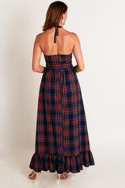 A Holiday take on a CKB staple! This flattering silhouette features a feminine ruffle trimmed halter top and a ruffled hem. Just add heels and statement earrings, and you're ready for that Holiday Soirée! WARNING: prepare yourself for compliments all night long!