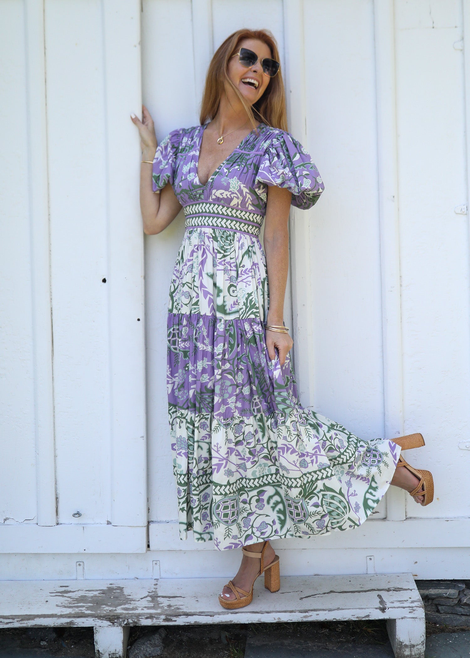 Be the reason they can't look away in this showstopping number! Featuring perfectly puffed sleeves, beautiful contrasting prints and a flattering waistband, this dress is the feminine flirty frock you've been looking for! Whether you're traveling somewhere warm, or looking for the perfect dress to take you into spring and summer, the Heather Dress in Frolic Cream and Lavender will have you covered!