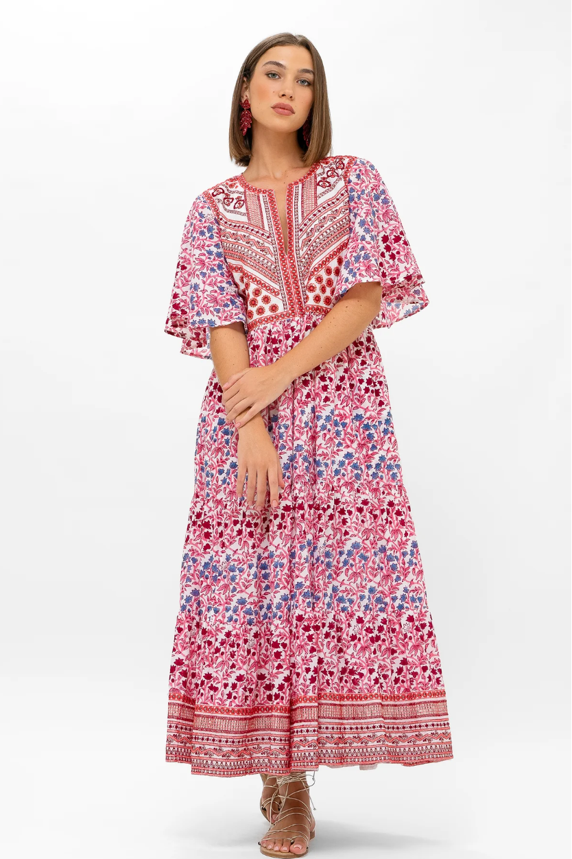 Oliphant Flirty V-Neck Maxi Mendoza Coral