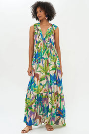 Oliphant Ruffle V-Neck Maxi - Blue Kruger