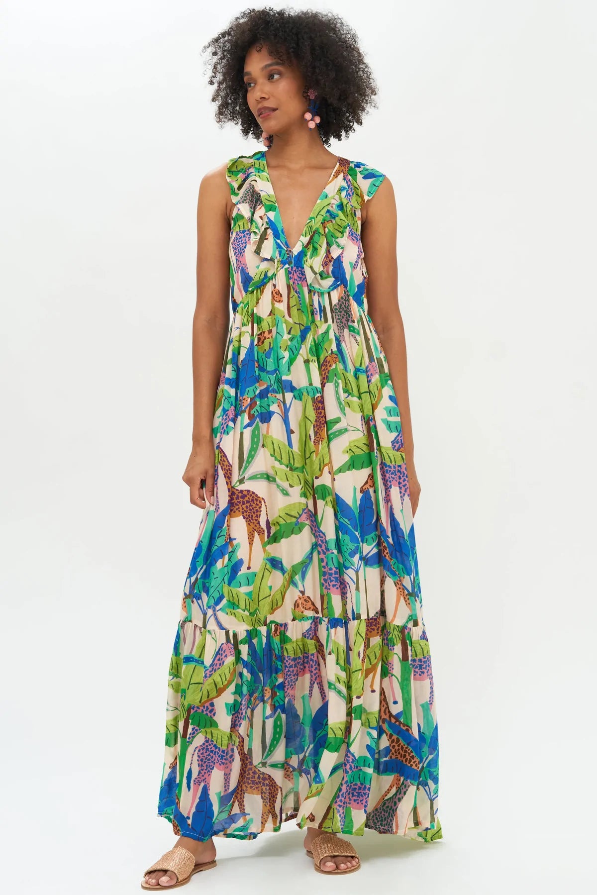 Increase quantity for Oliphant Ruffle V-Neck Maxi - Blue Kruger