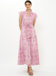 Oliphant Ruffle Collar Button Maxi - Malta Pink