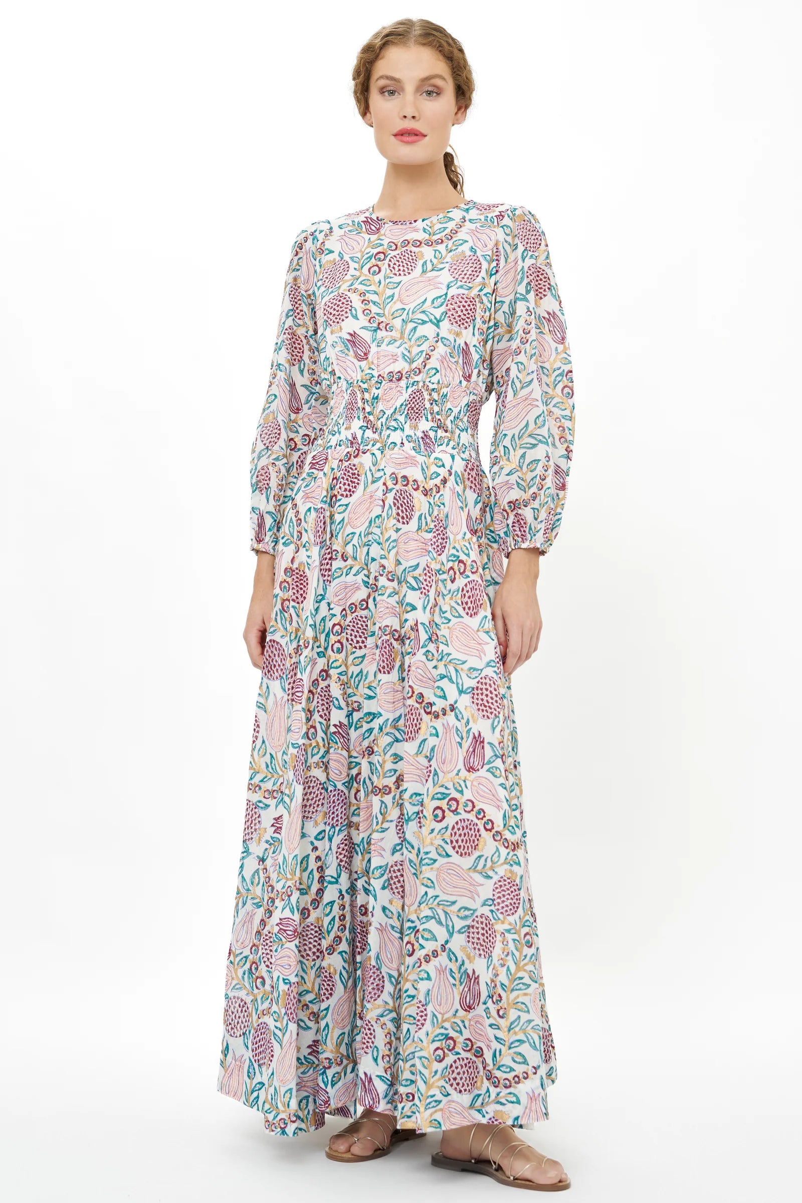 Oliphant Smocked Waist Crewneck Maxi - Tupi Teal