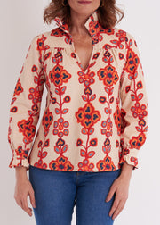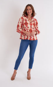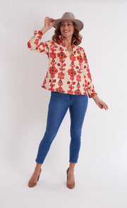 Crafted for effortless style, the Aspen Blouse in Serendipity Praline features a stretch cord fabric that moves with you, combining comfort with a polished look. Its structured design balances a high collar and flattering v-neck, creating a versatile top that seamlessly suits any day of the week—from office hours to weekend outings. This blouse elevates everyday dressing with its expert tailoring and easy elegance.