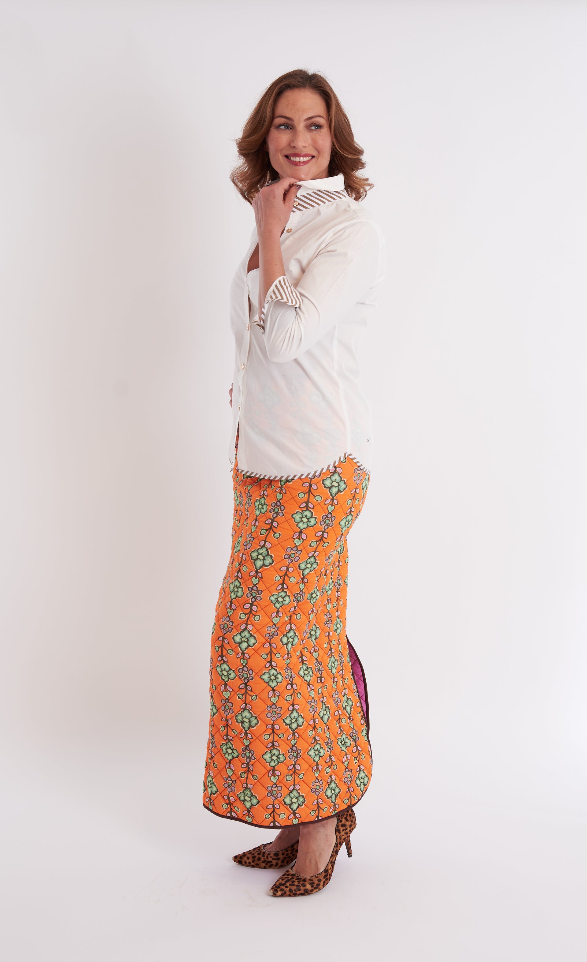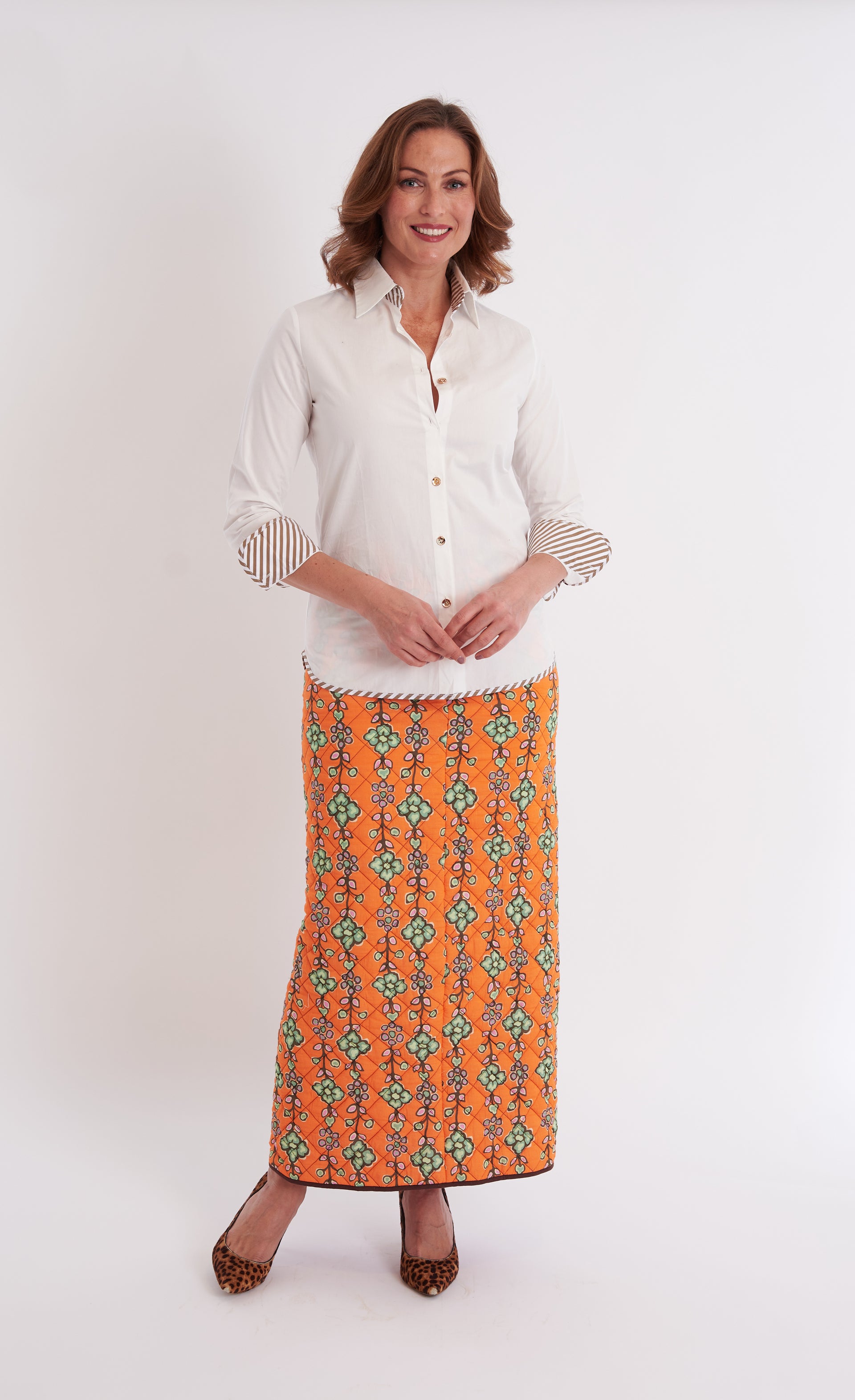 The Bryson Button Down in White/Taupe Stripe puts a playful spin on a classic look. Featuring clean, crisp white fabric with gold buttons and peek-a-boo striped cuffs, this shirt adds a fun surprise to your everyday style. Perfect for mixing timeless elegance with a touch of whimsy.