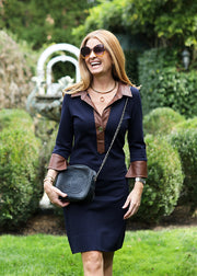 Step out in style with the Dixie Dress in Navy, a CK Bradley staple pulled from the relics! This versatile dress features chic faux leather trim, making it effortlessly easy to wear to work or dress up for a fun night out. Playful yet polished, it’s your new go-to for this winter!