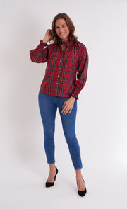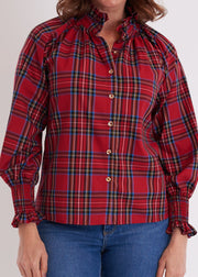 The Frau Blouse in crisp Royal Stewart cotton is back and ready to shine! With gleaming gold buttons and a flirty ruffle collar, it brings a fun update to a timeless style. Elastic cuffs let you create a fuller sleeve look whenever you like. This top delivers charm and ease without asking for anything in return.