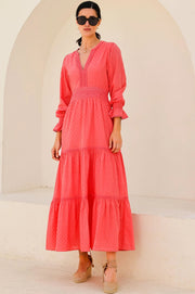 Introducing the Purdie organic cotton dobby dress. This dress combines elegance with everyday comfort. Crafted from lightweight, textured cotton dobby fabric, it features a flattering silhouette with a softly cinched waist and flowing skirt that falls to a maxi length. This dress is designed with long sleeves and shirred cuffs, while the breathable fabric adds a delicate, airy feel. Perfect for both casual and dressier occasions, it pairs beautifully with sandals or ankle boots for versatile styling. Also comes in a shorter length.