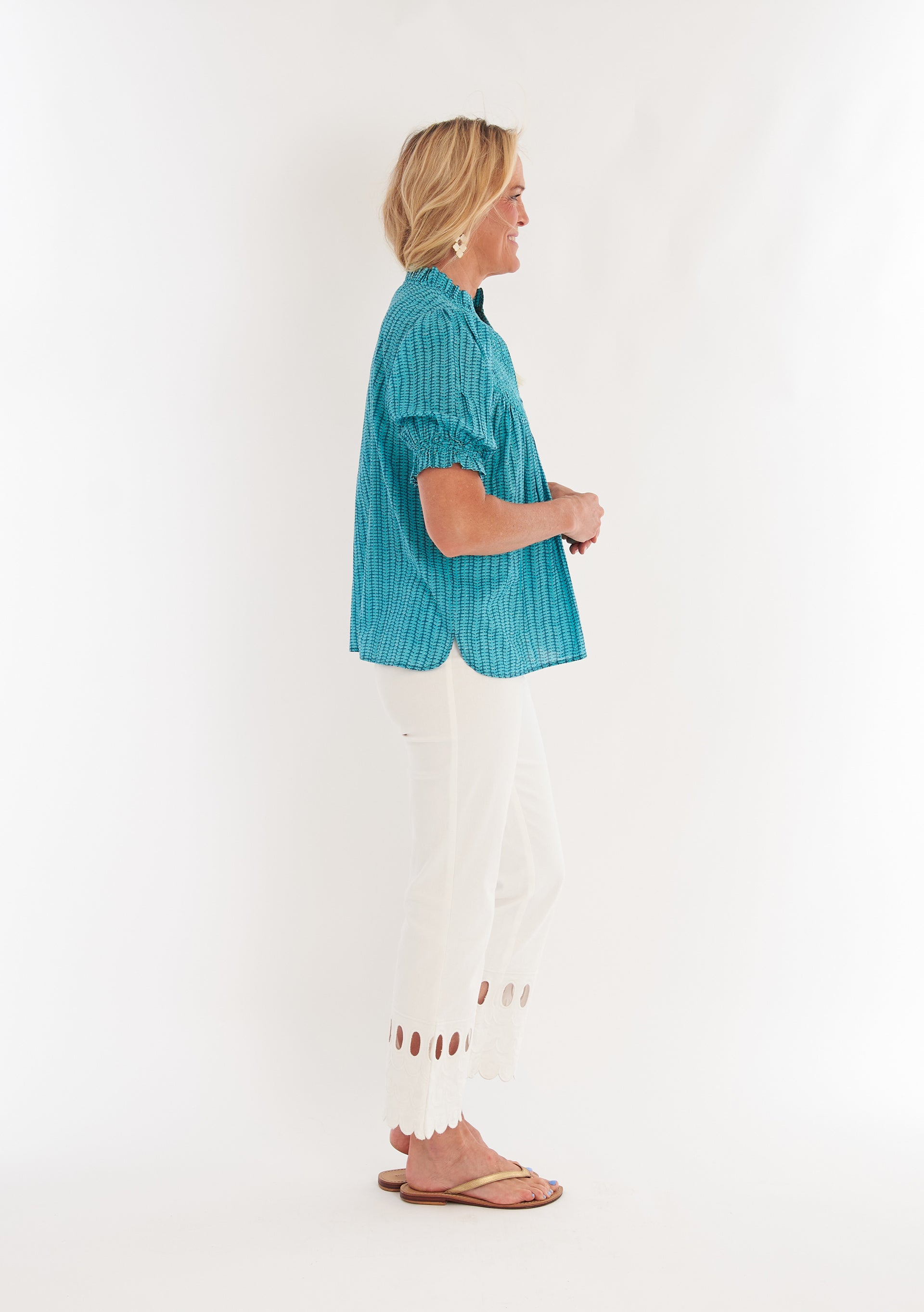 The Cayman Top is back and better than ever this Spring! Made in a crisp cotton, this stylish top is the perfect spring-into-summer piece that will be a favorite in your repertoire through seasons.