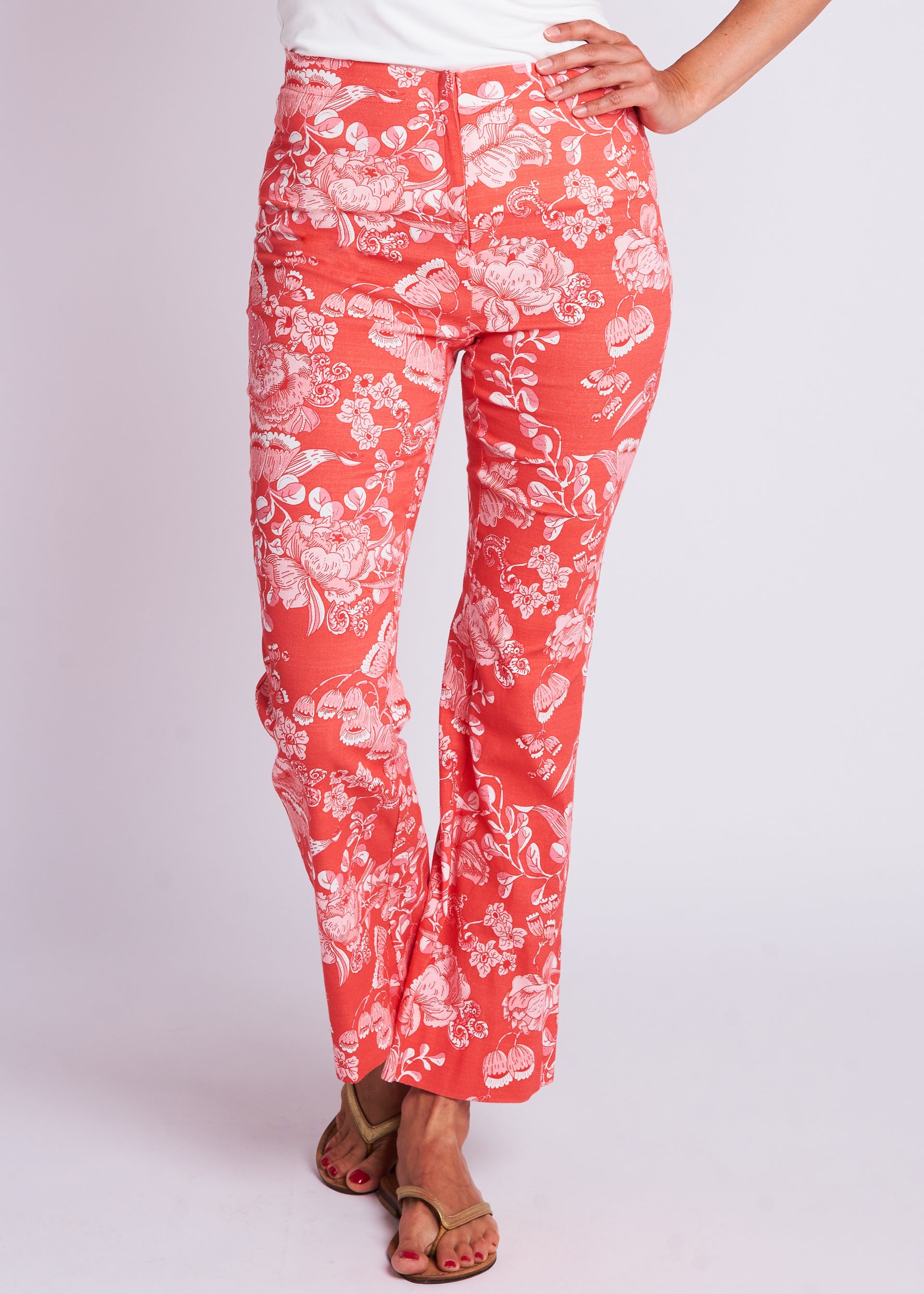 Our signature Meister pants are best when printed! Fitted through the waist and hips, with a bootcut flare, these pants are super flattering on legs of all ages!