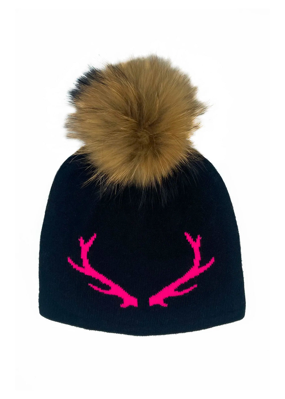Decrease quantity for Pom Pom Hat - Pink Antler on Natural
