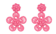 Handwoven and crafted by artisans in Colombia, these lightweight statement earrings feature a layered floral design in light pink with beautiful texture and detail. Each pair is handmade, making every piece unique.