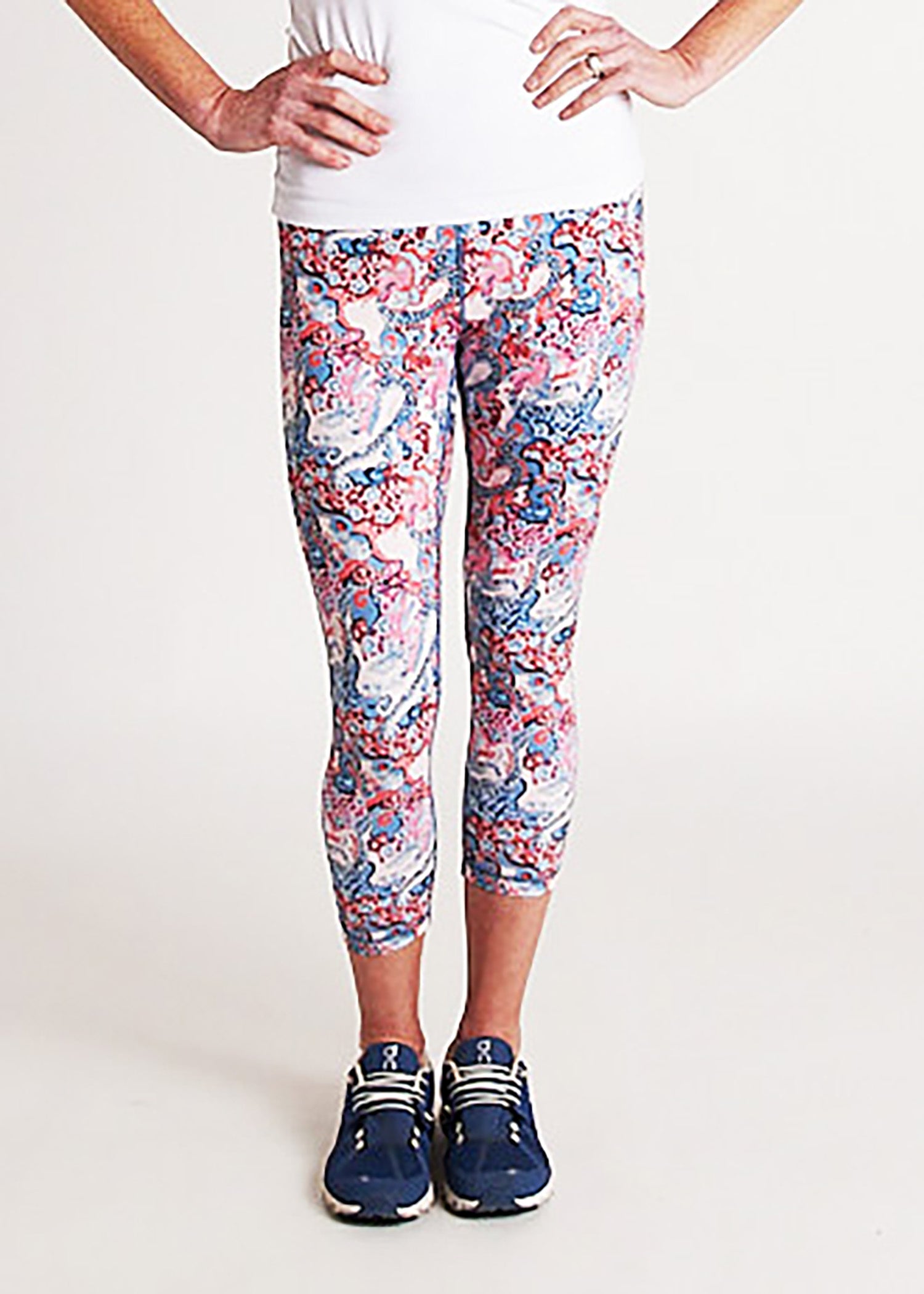 These leggings will take you from downward dog to soccer practice to Psych 101 to the grocery store. Look great, stay comfy. High-waisted with back cell phone pocket.  Hits above ankle. Breathable. Performance Spandex-Lycra.