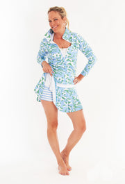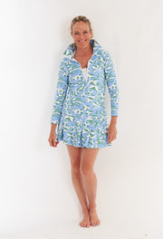 Introducing the Sutra Half Zip! This sport top is perfect for the gym, yoga, and even running errands. Our new Lingren print in Tahitian Tide adds a touch of fun to your athleisure wardrobe. Don't settle for boring, stand out in the Sutra Half Zip!