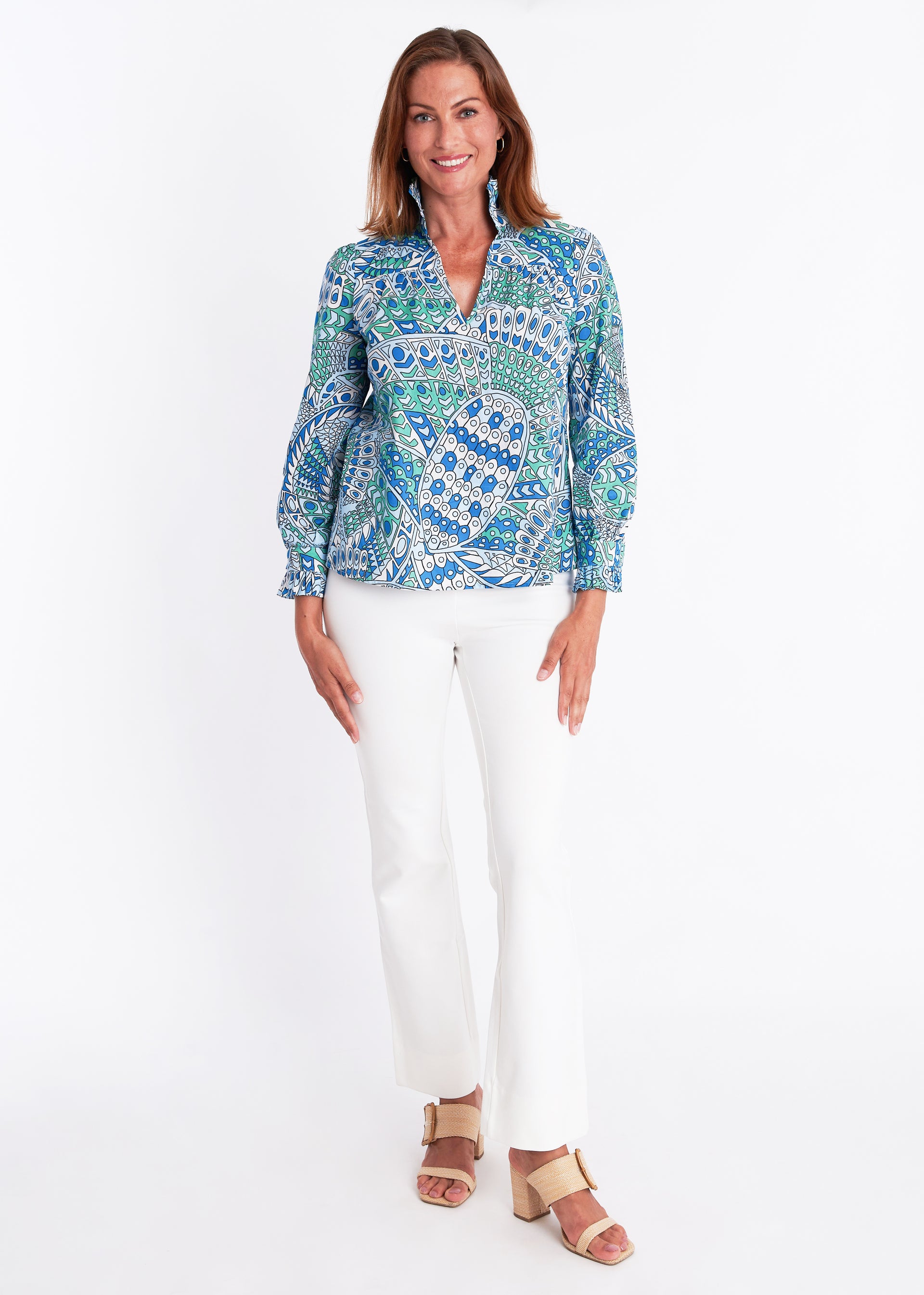 We are so excited... our tried-and-true Aspen Blouse is back and we're loving it in our NEW Falcon Tides Print! Just consider the milage this blouse will get! Simply throw on your favorite jeans and Mary Jane flats and you’re ready to go!