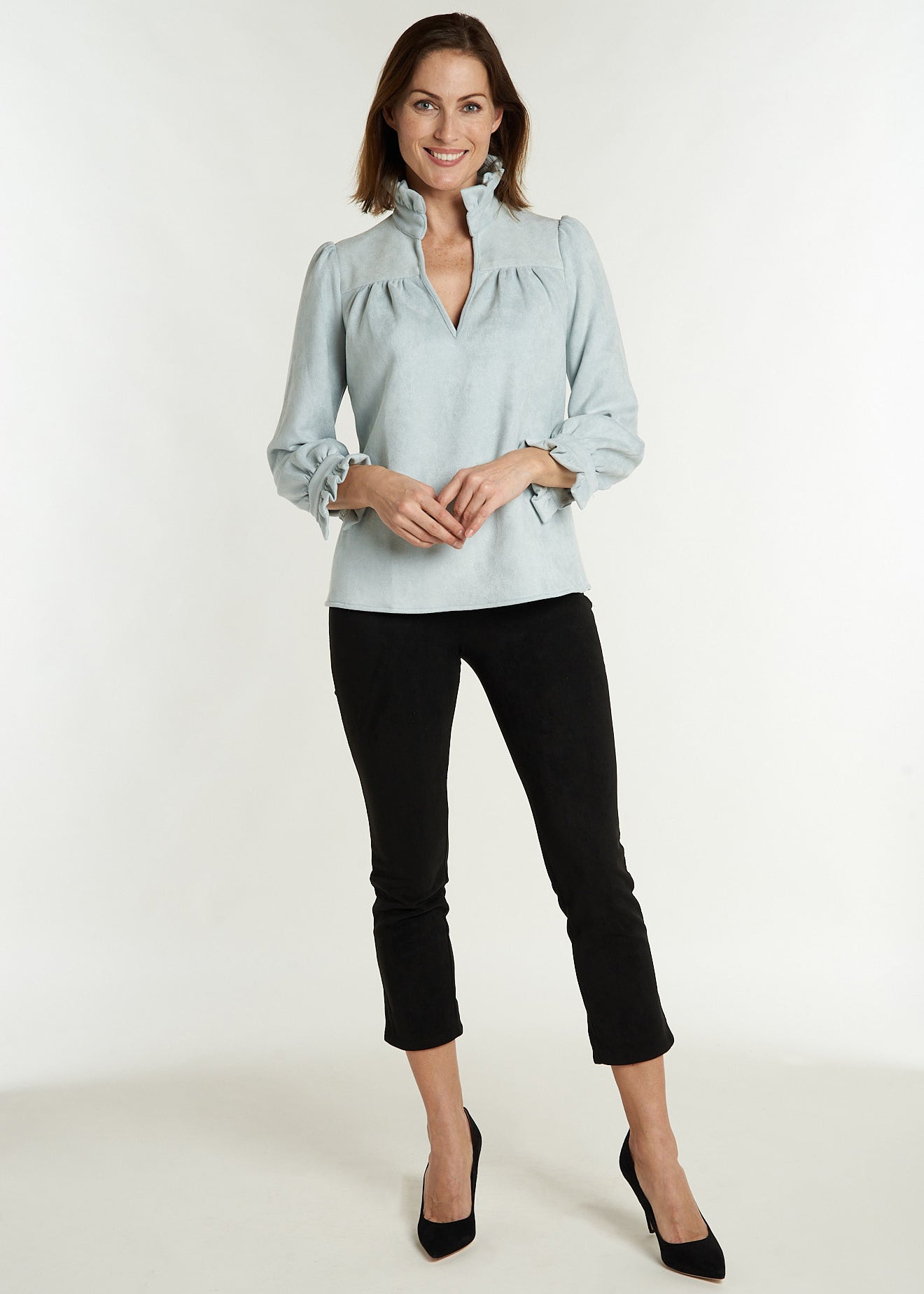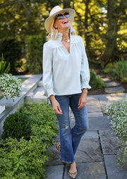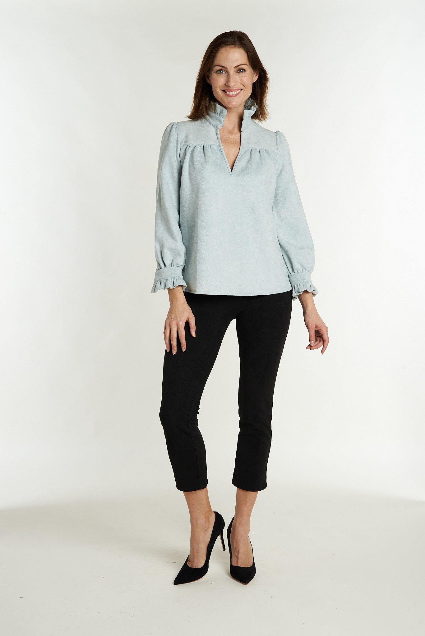 The Aspen Blouse has done it again! ...and our new micro suede material is perfect for fall and winter! Just think of the milage you'll get from this feminine and versatile blouse!