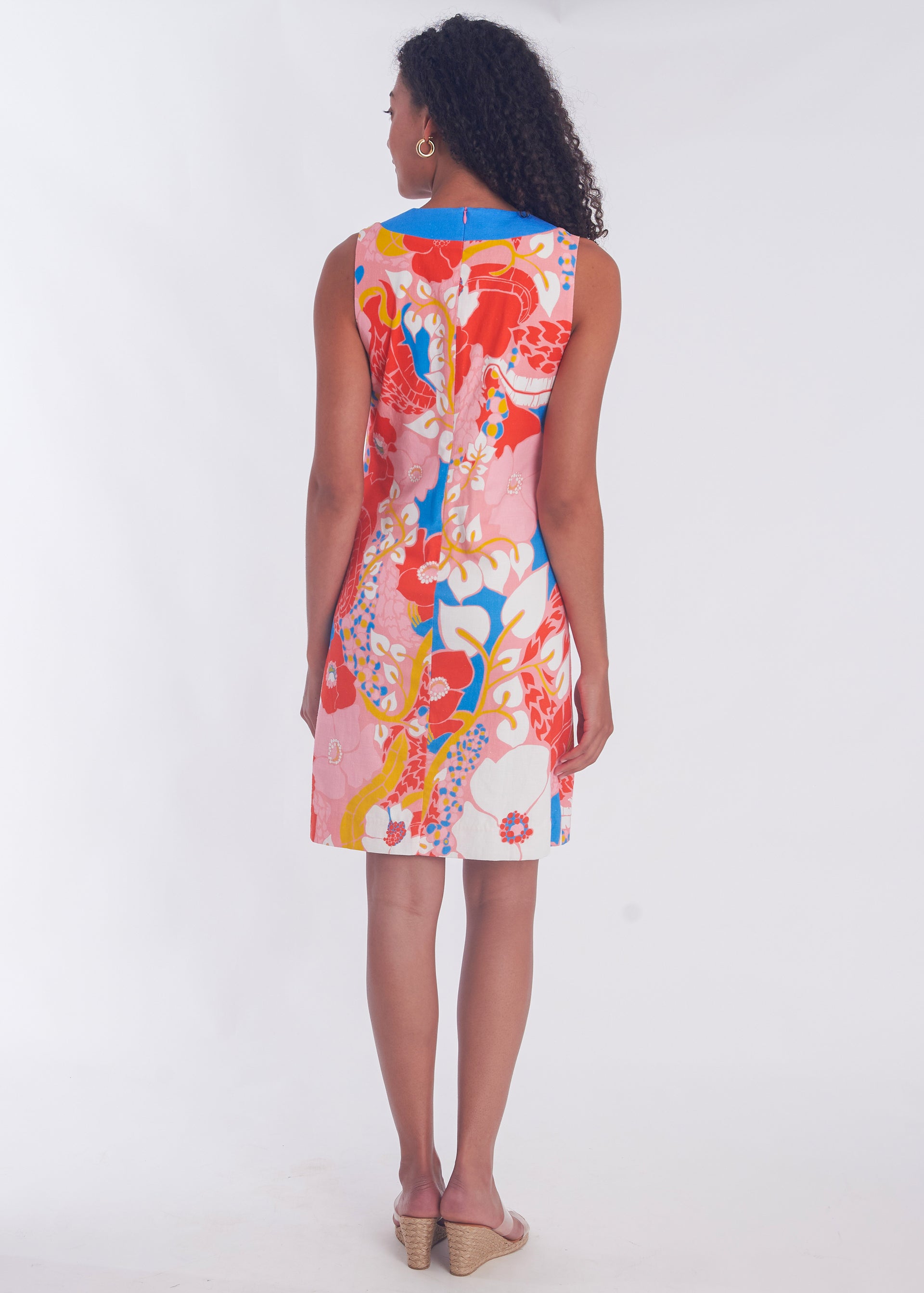 Our new Calla Dress is checking all the boxes! Made to effortlessly flatter you and earn you some compliments along the way.... This Flirty Mini features a shift silhouette, contrasting trim along the neckline, and our new Narnia print. Perfect for a daytime event or a summer cocktail party.