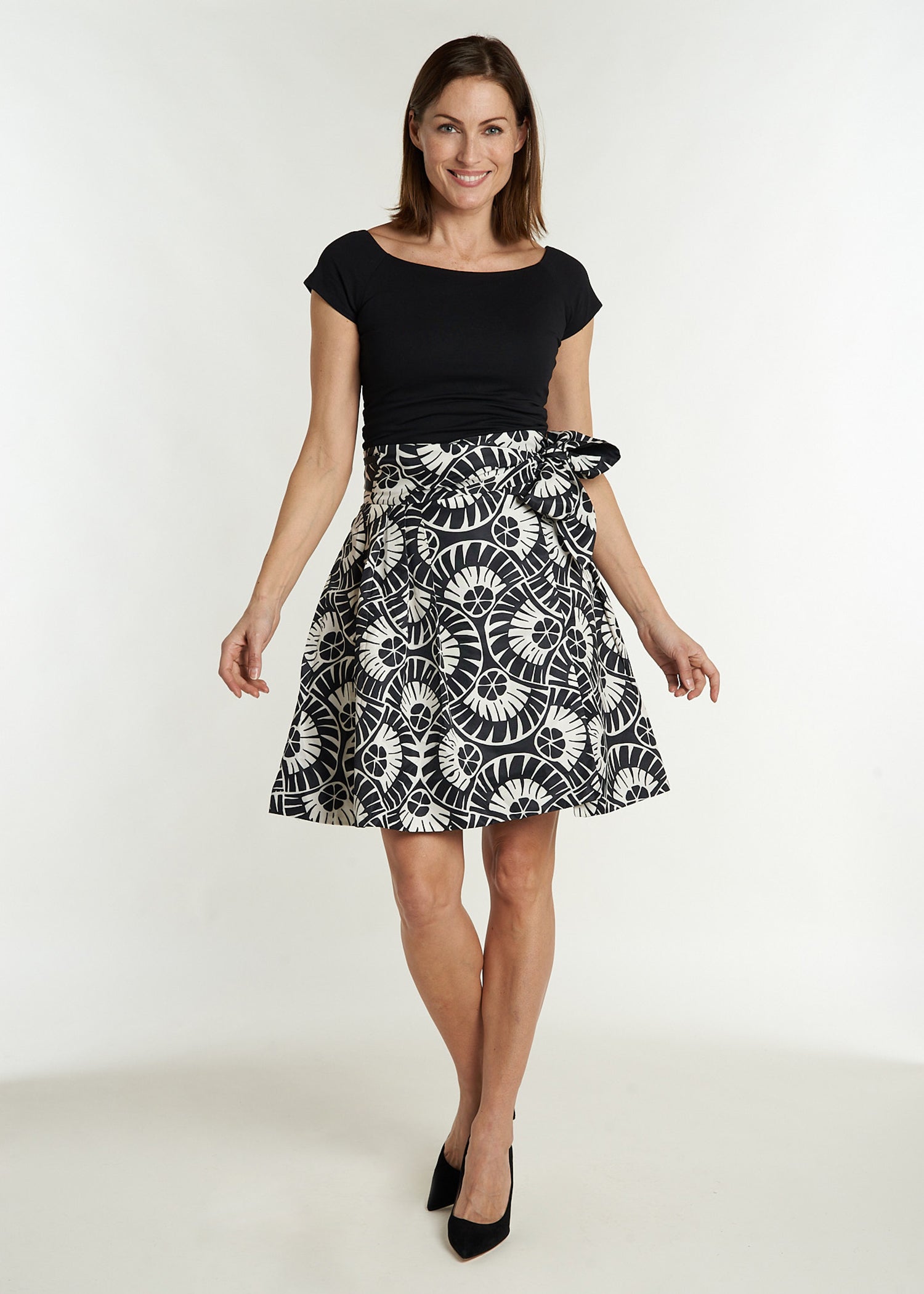 In a fabulously fun print, we’re wearing the Carrie Wrap Skirt in Mesmer Black everywhere we can! Fresh, feminine, and ultra-flattering, this skirt is as gorgeous with a simple sweater and ballet flats for day, as it is with a frilly blouse and heels for night.