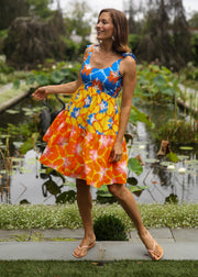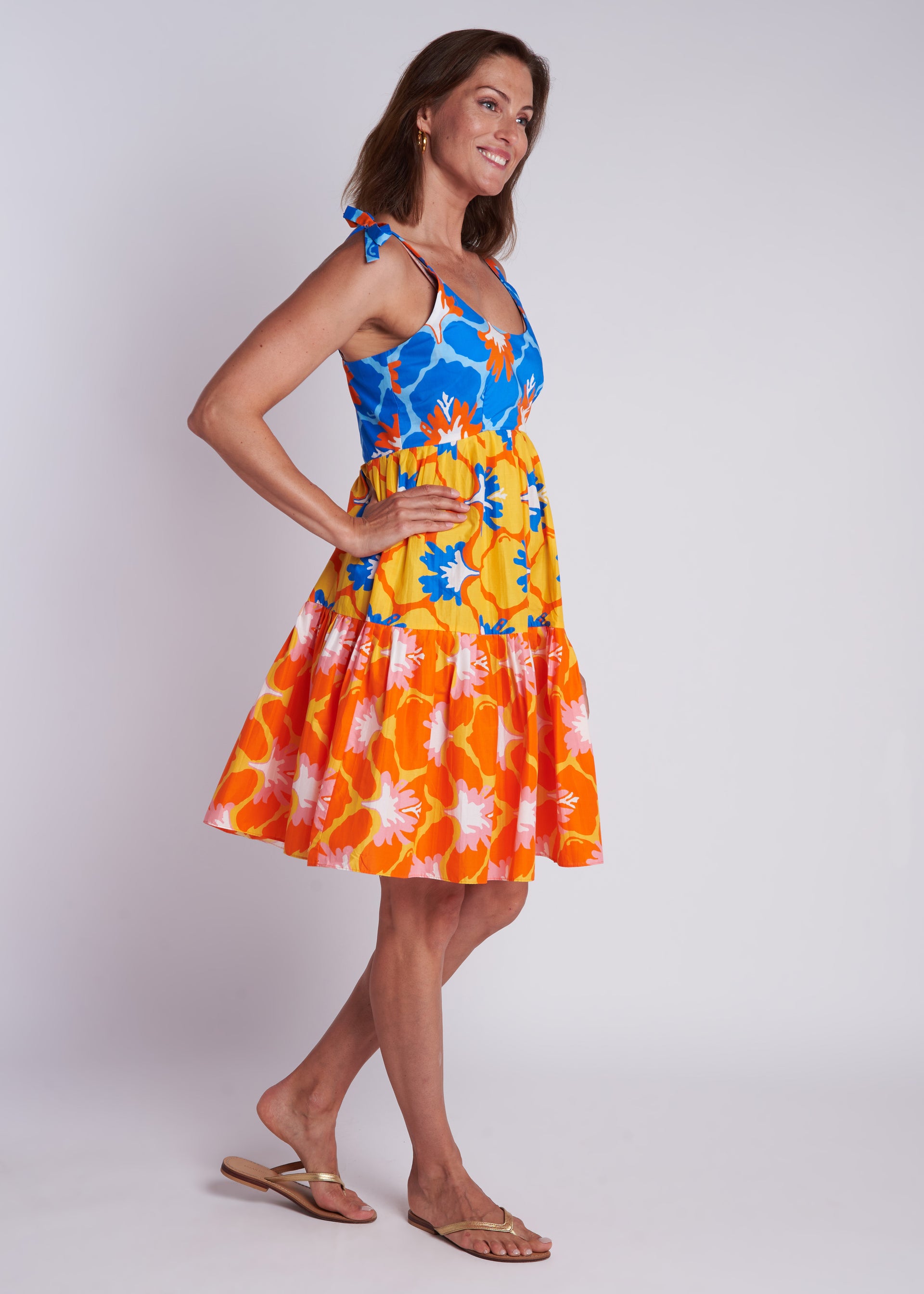 This sleeveless mini dress features a tiered A-line silhouette with pleating, tie straps, side pockets, and a slight U-neckline. Pair with sandals for a more casual approach or heels for an elevated ensemble!
