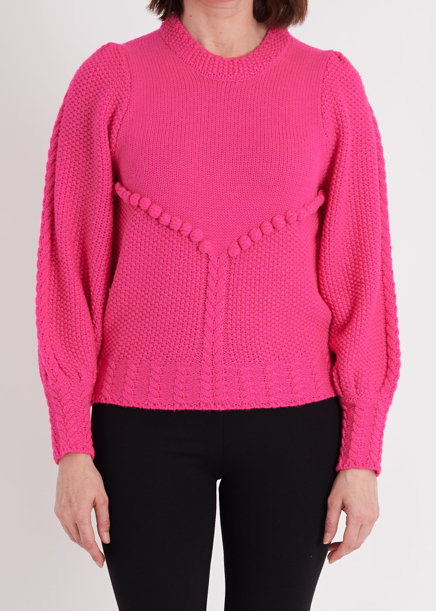 Cold weather doesn't mean you have to sacrifice style!  The Mead Sweater is the perfect combination of warmth, comfort and stylishness.  Featuring voluminous balloon sleeves, a crew neckline, and contrasting knit details.  The Gray hue gives you endless outfit options, and for the more adventuresome the Hot Pink is the perfect pop!
