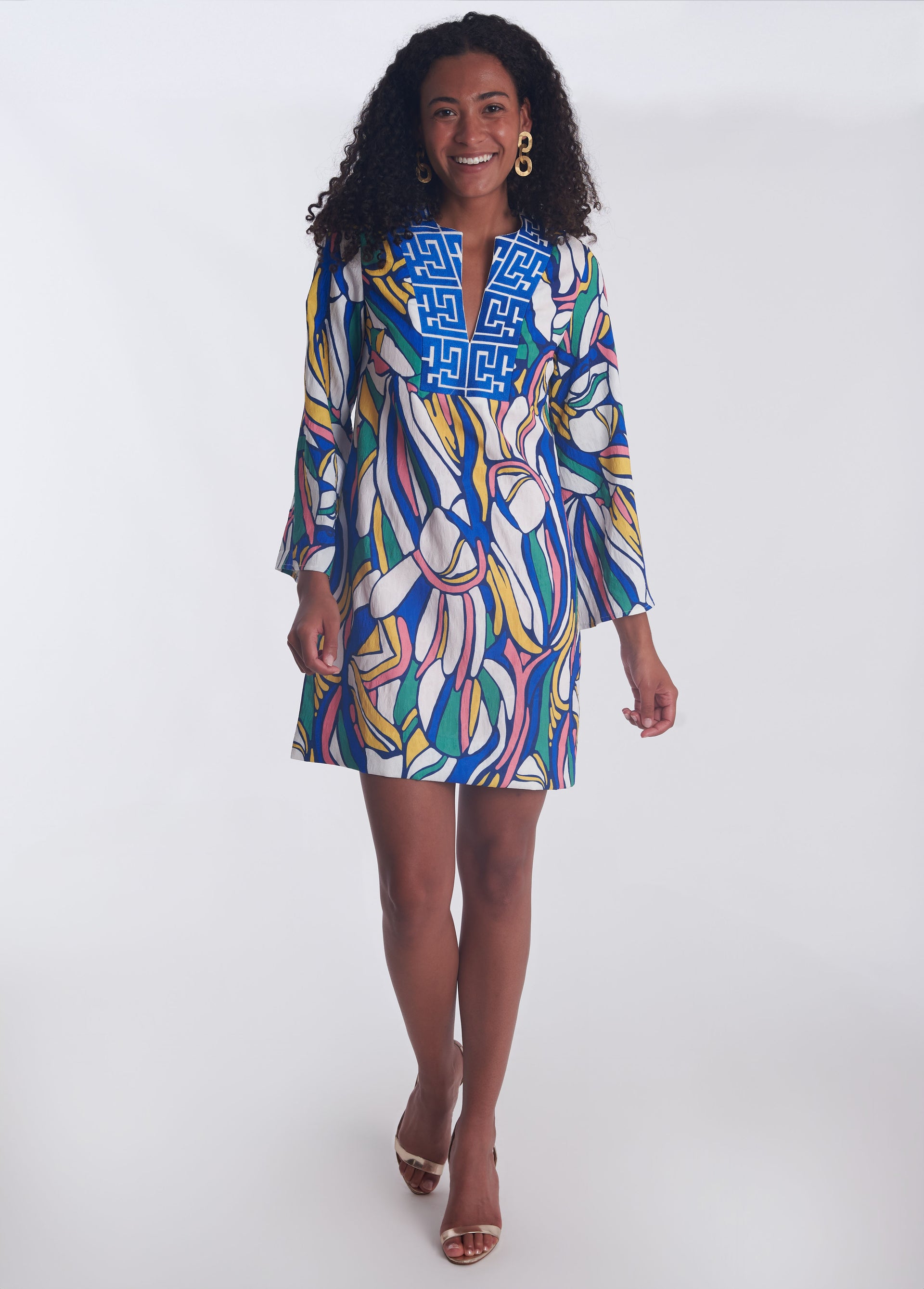 Whatever celebratory occasion you're dressing up for this season, the Minnie Mini is sure to make a BIG statement! Featuring long fluted sleeves, a fun print with contrasting collar, and a slight a-line, this silhouette looks amazing on everyone!
