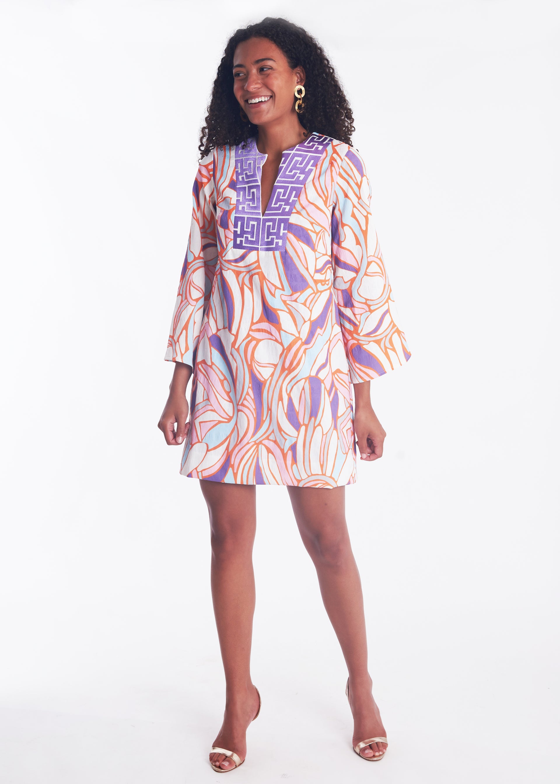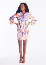 Whatever celebratory occasion you're dressing up for this season, the Minnie Mini is sure to make a BIG statement! Featuring long fluted sleeves, a fun print with contrasting collar, and a slight a-line, this silhouette looks amazing on everyone!