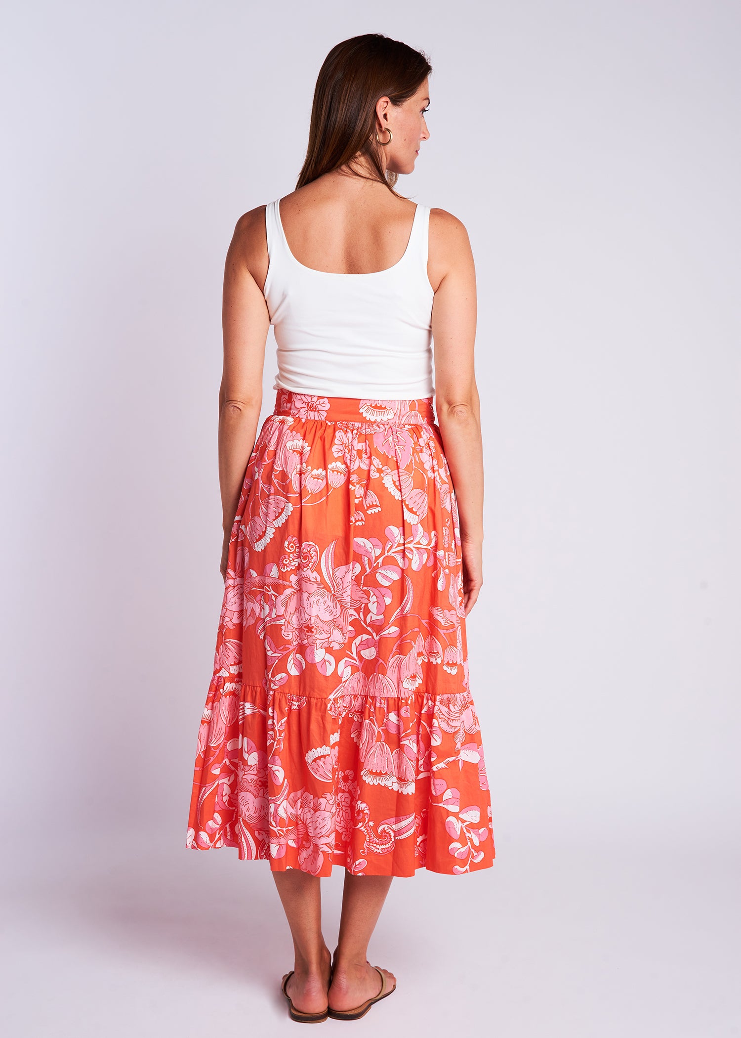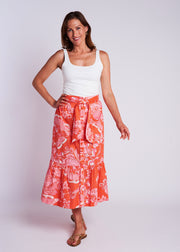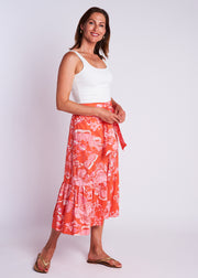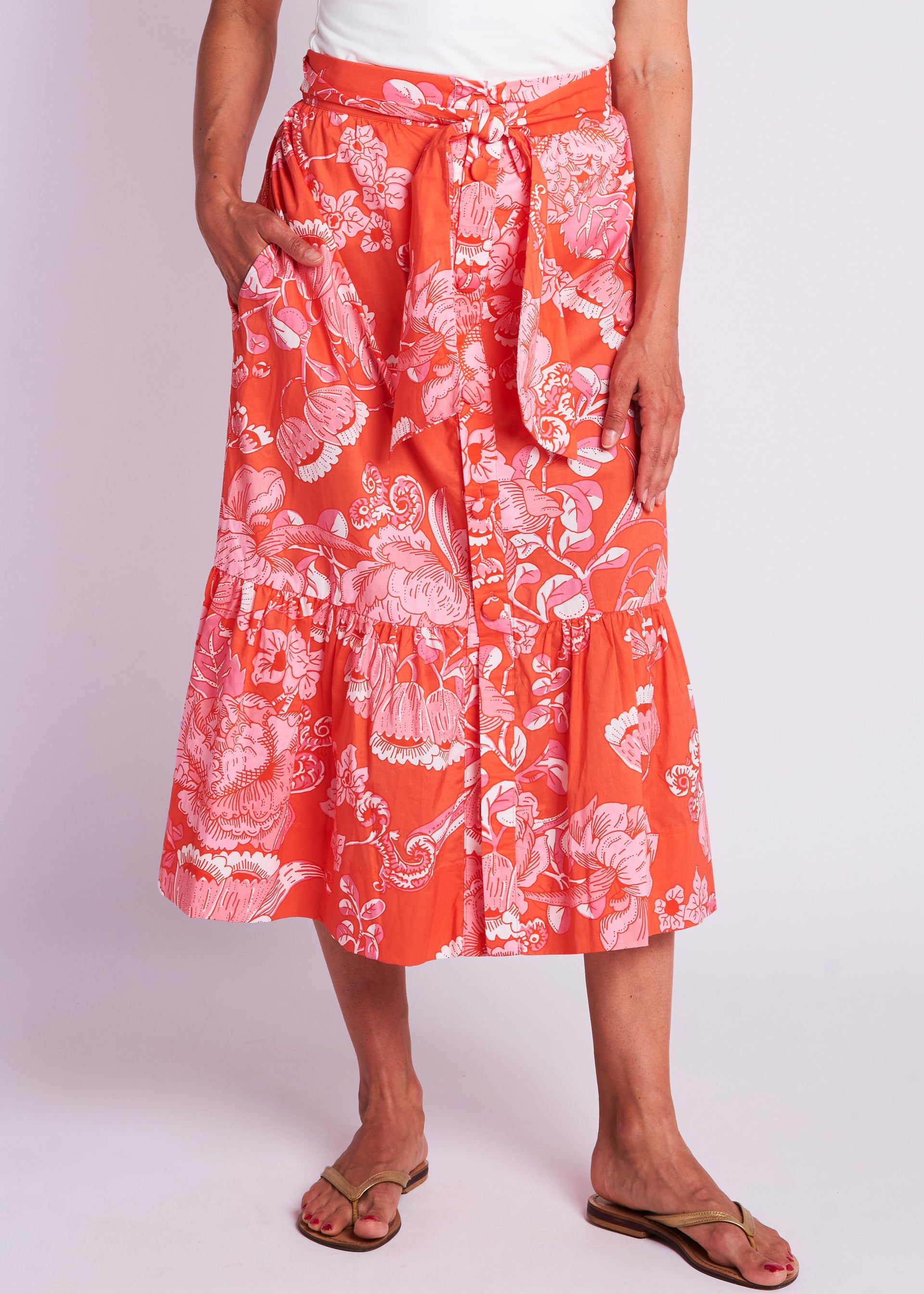 Vintage clothing lovers, unite! The Phoebe Skirt is CKB's latest retro-inspired piece, designed to take you from day-to-night looking chic as ever! Featuring a high waist with tie detail, a tiered A-line fit, button front and pockets!