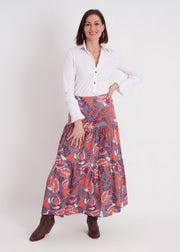 YES! YES! YES! Talk about a show stopper! This skirt is it! The Print, the stretch linen, the tiered skirt! Perfection. Easily paired with a classic white button down, a chunky knit sweater and boots, or a t-shirt and denim jacket... the options are endless!