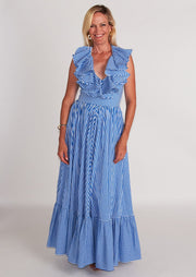 Make a serious statement with our Samba Dress! Ruffles accentuate the flattering halter neckline, and the full skirt make this dress twirl-worthy! Oh, and did we mention there are pockets?!