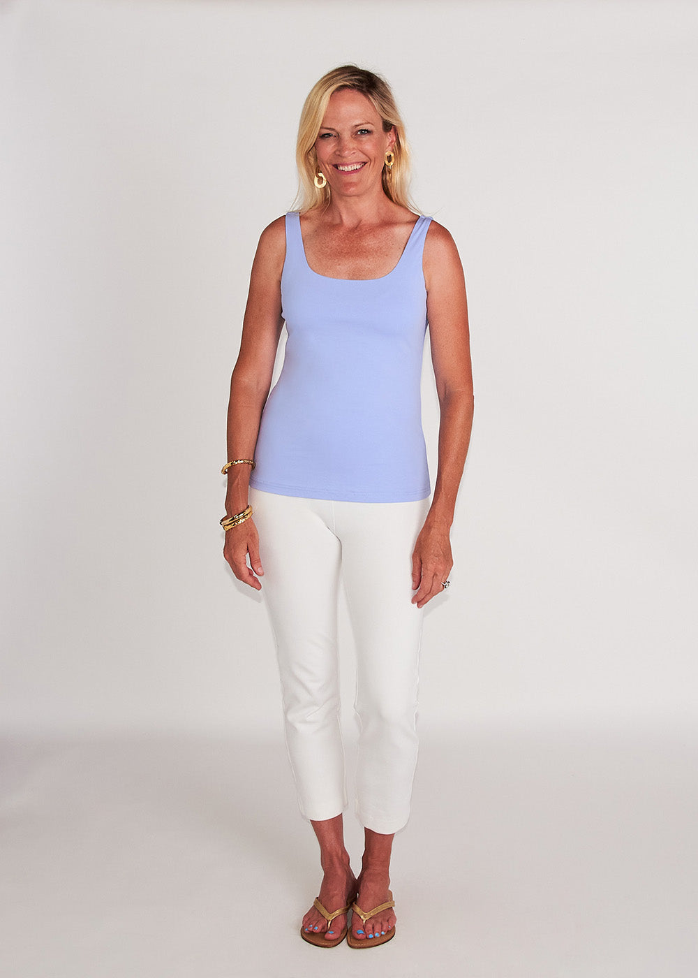 Not all Basics are created equal... and this CKB Basic isn't "Basic" at all!  The double layered jersey makes this tank more substantial than your typical tank, and the slim fit makes it perfect for layering or tucking into your favorite high-waisted skirt