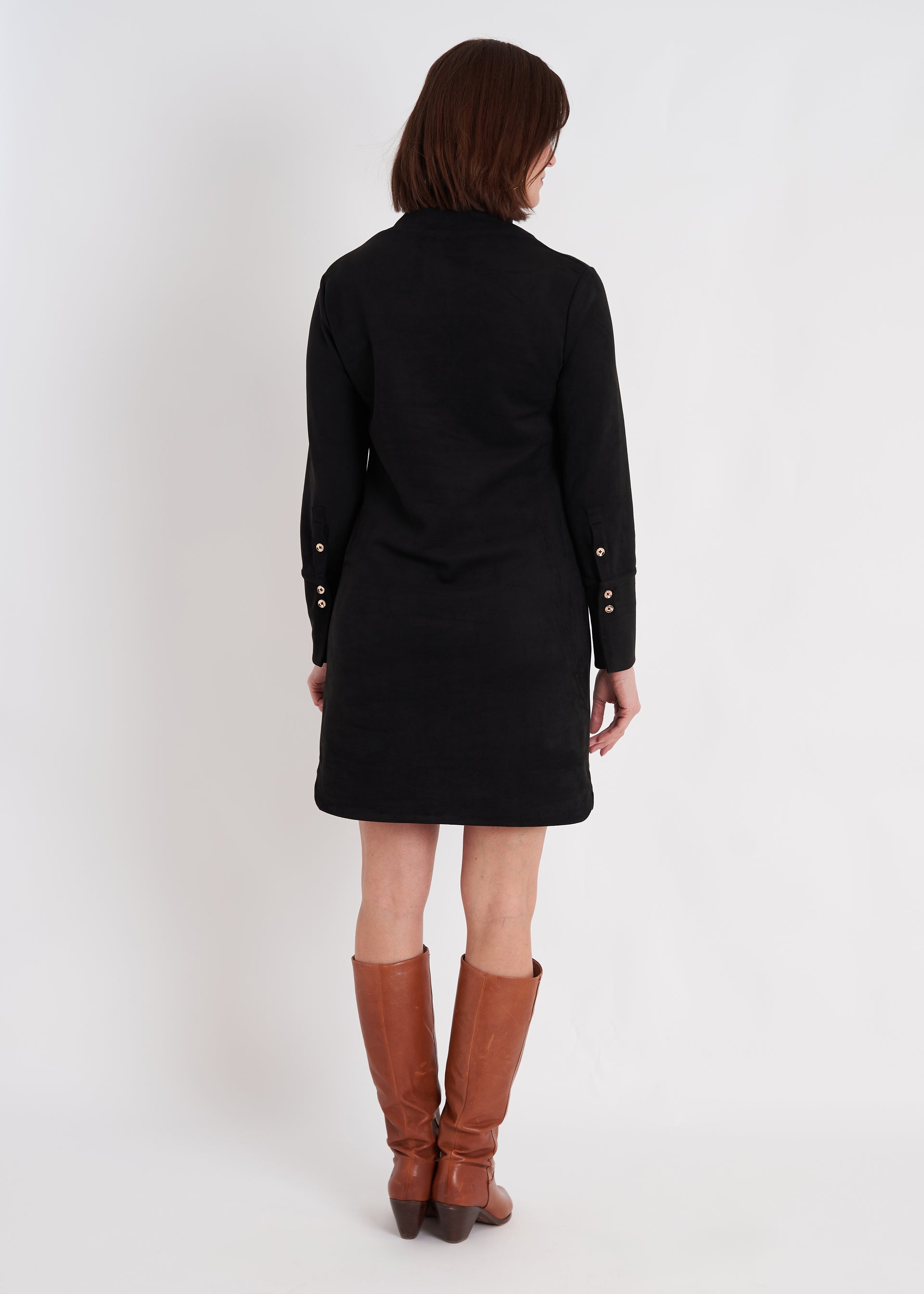 Cut in the softest faux suede, the Turek Dress features a relaxed fit, loose turtleneck and long sleeves.  Just like your coziest fall sweater, this dress will be what you want to put on! Pair with tall boots and a fur vest for a chic weekend look, or ballet flats for the office.