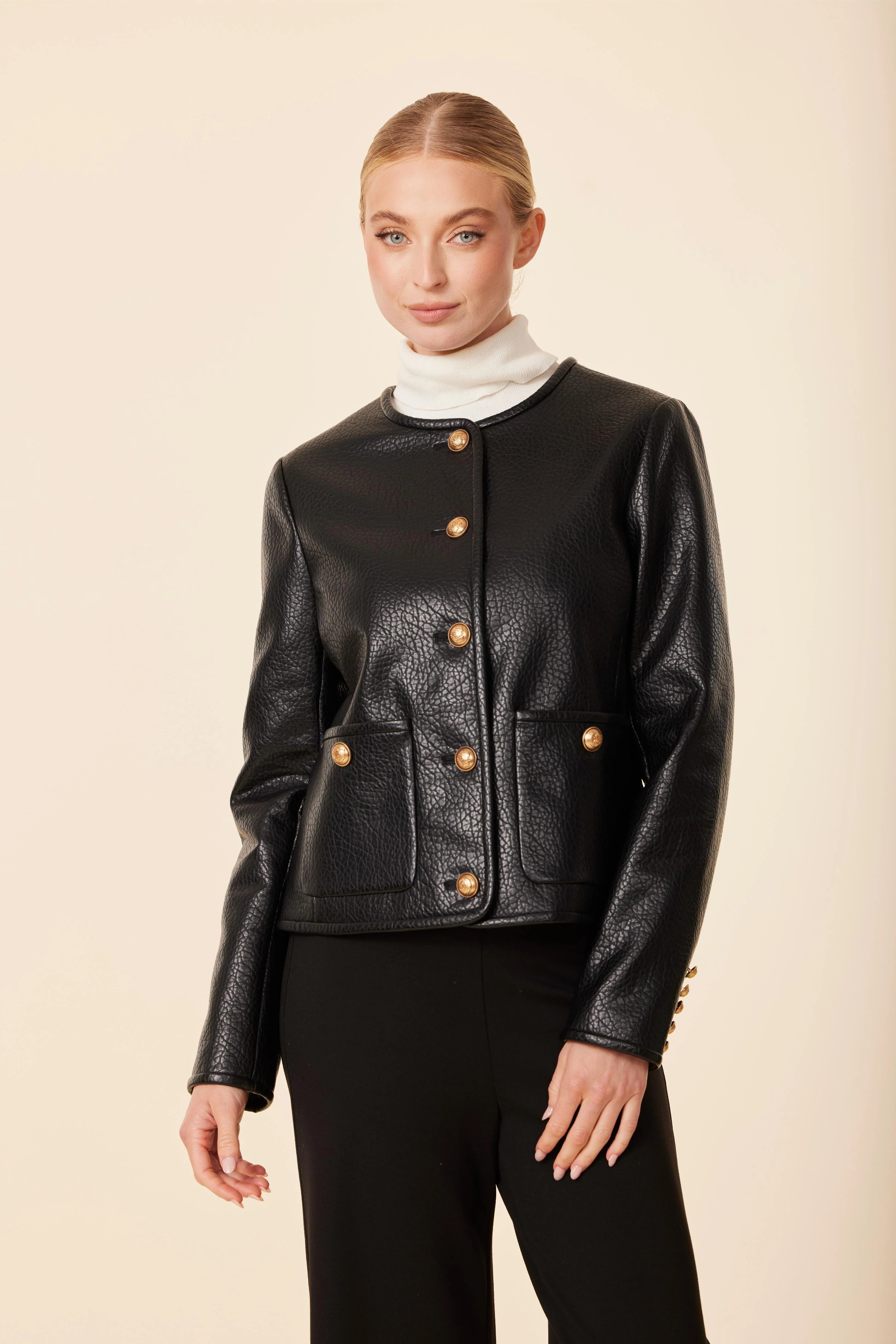 Dolce Cabo Faux Leather Textured Jacket - Black